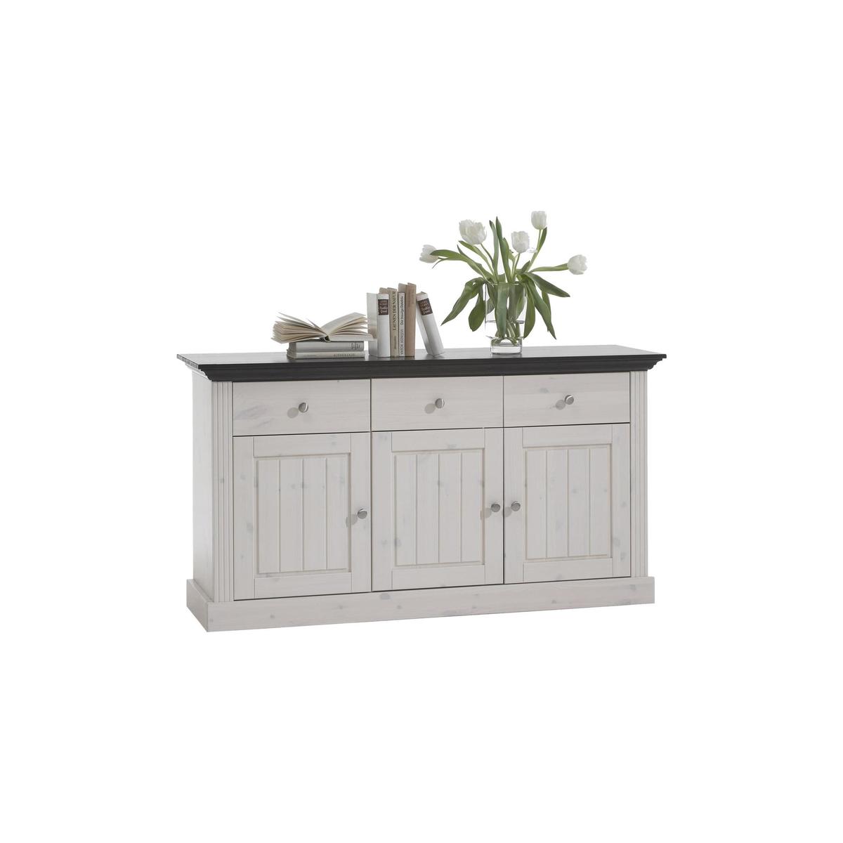 A striking white sideboard crafted from solid pine with 3 drawers for all your dining room essentials. Keep your dining room essentials close at hand with the Steens Monaco 3 Door 3 Drawer Sideboard Crafted from sturdy pine with a striking whitewash finish and a contrasting dark stained top, this sideboard will look great in any dining room. There are 3 drawers and 3 cupboards with plenty of space for all your plates, bowls and cutlery. Please note, unfortunately we cannot deliver this item to the Channel Islands.