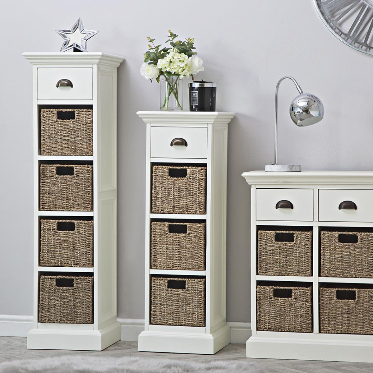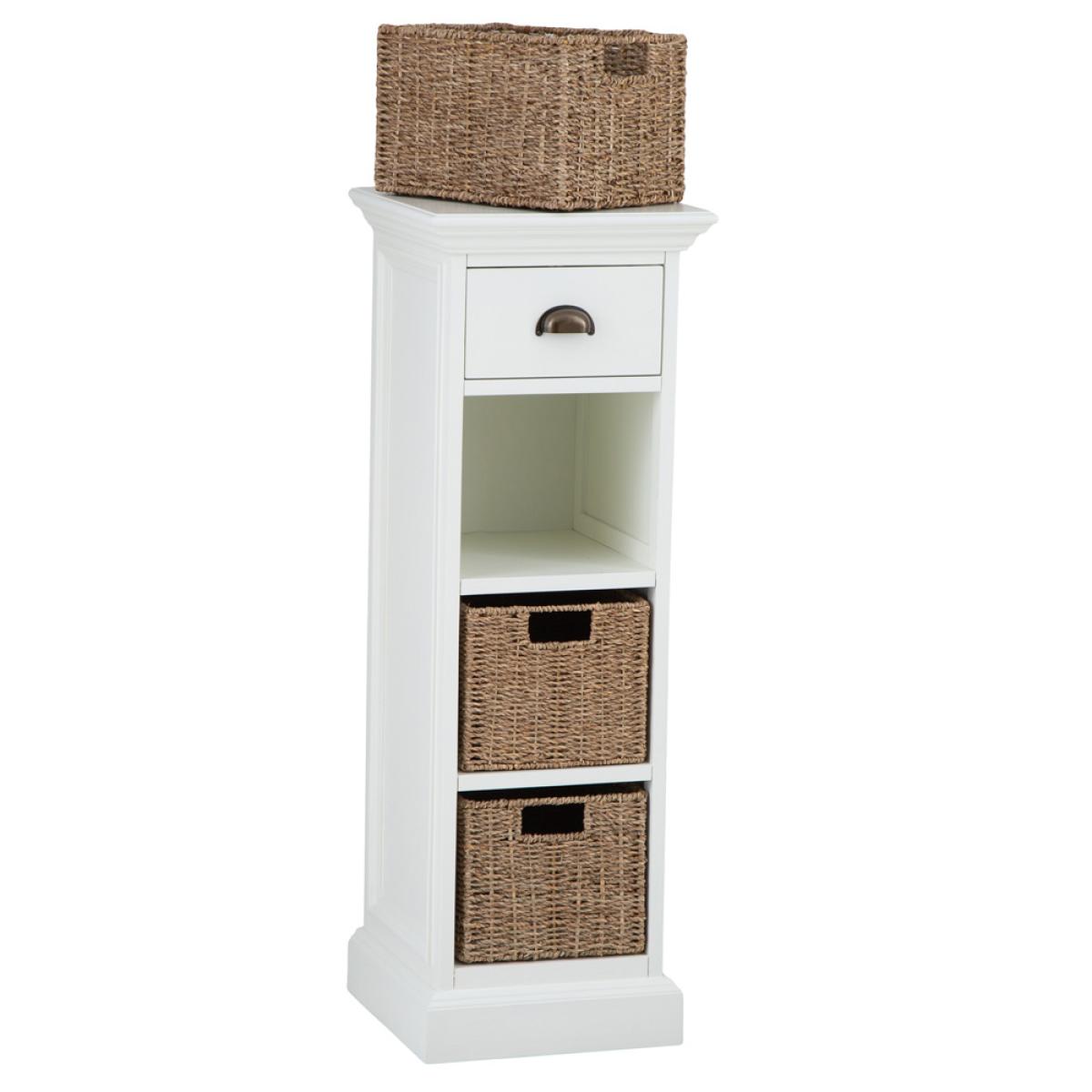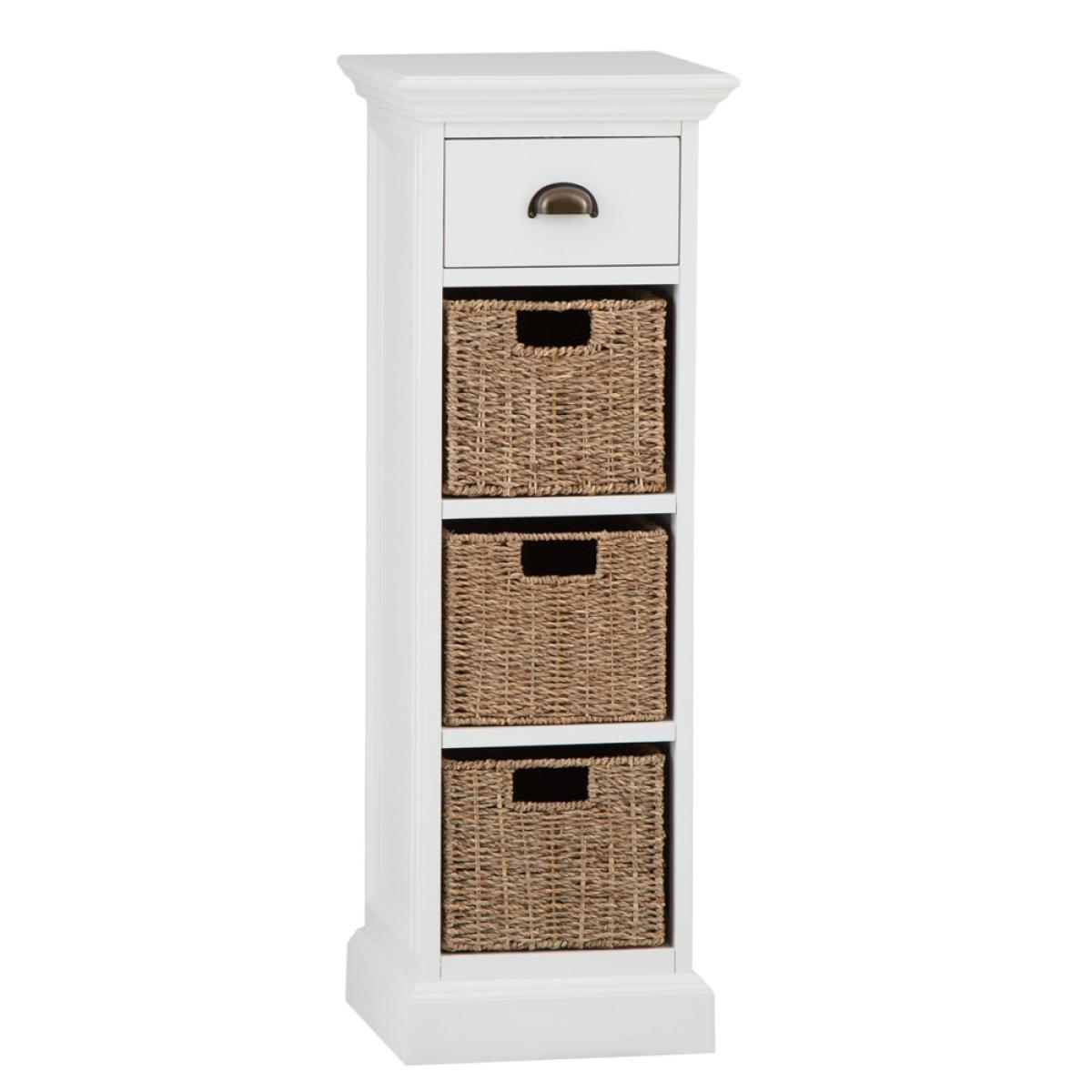 Monaco White Wicker 1 Drawer 3 Wicker Basket Unit