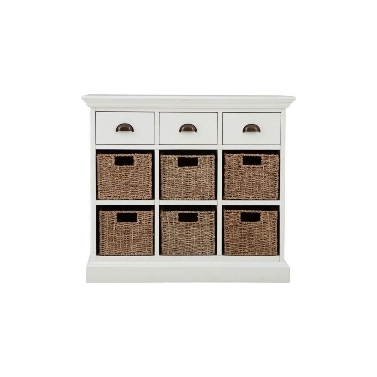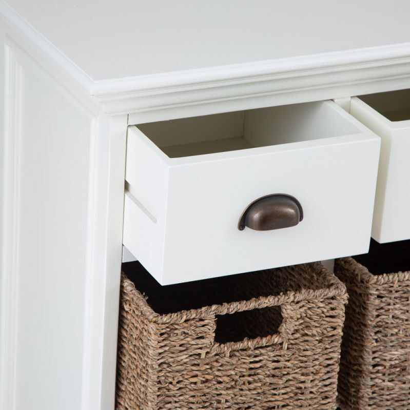 When storage is the order of the day, you might be forgiven for thinking that you have to sacrifice style and aesthetics. The good news is that's not how we do things here at Chiltern Oak, which is where the Monaco White Wicker 3 Drawer 6 Basket Unit comes into its own. It's an elegant, refined piece that instantly catches the eye from the moment you walk in the room, allowing you to feel at home as soon as you see it. When you add the interplay between the wicker drawers, cupped handles, and of course that elegant antique white painted finish the range is known for, you have a Side Unit quite unlike any other.