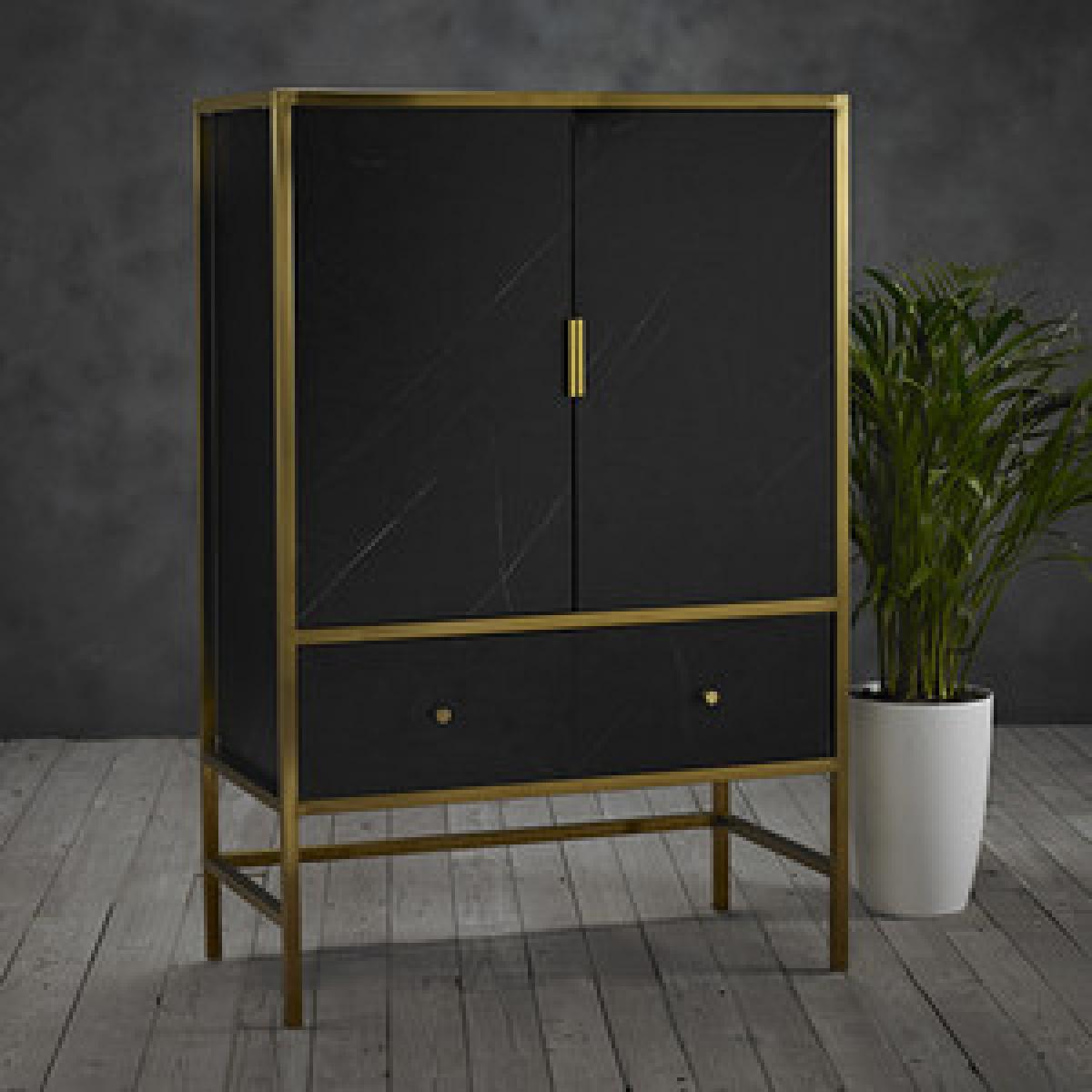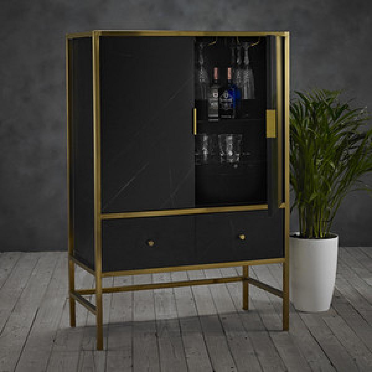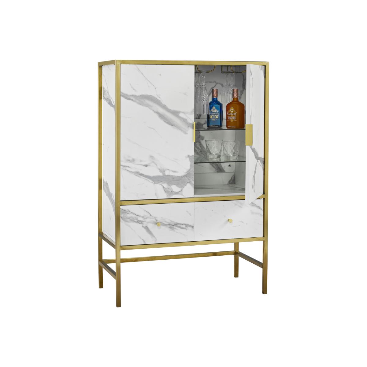 The Monaco wine cocktail cabinet will be the new piece de resistance to your living space! Add that wow factor when entertaining guests, or just yourselves, with this luxurious cabinet that will house all your entertaining needs. Removable shelves to accommodate your storage requirements. Available in white or black faux marble with a sleek gold frame, this piece is an easy, glamorous, yet affordable update for your home.