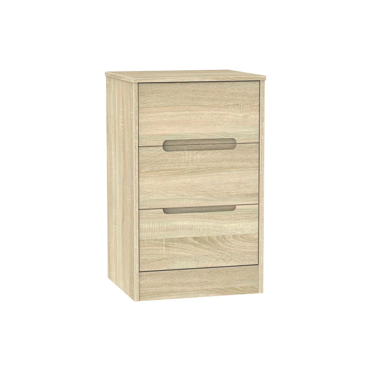 Add a personal touch to your bedroom with the Monaco 3 Drawer Bedside Cabinet. This bedside cabinet features a melamine faced fibre board build and beautiful drawer fronts finished in high gloss. Choose from a selection of base colours and gloss finishes to create a unique piece which will stand out in your bedroom and convey your personal style. Part of the Monaco bedroom furniture range the Monaco 3 Drawer Bedside Cabinet will match all the items in this collection particularly well, or as a single addition to your existing bedroom set-up. This item comes fully assembled, so no cutting or drilling is required and it's ready for use upon delivery. Please note, unfortunately we cannot deliver this item to Northern Ireland and the Channel Islands.