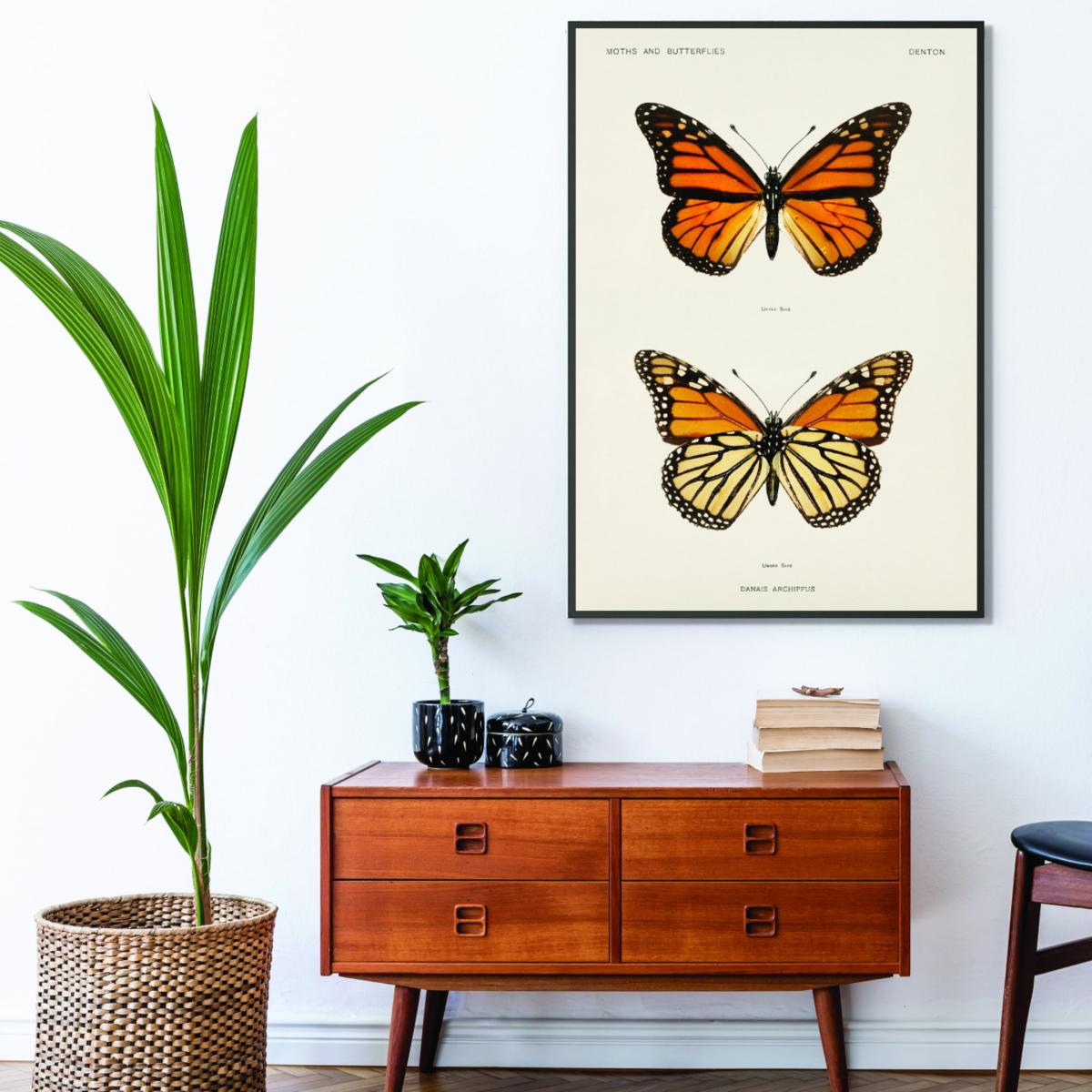 The Monarch Butterfly print is a great piece for adding a touch of colour and natural elegance to various interiors. I love it especially in minimal or contemporary spaces where the vibrant orange and detailed illustrations can really stand out against neutral walls. It works well in living rooms, bedrooms, or even home offices, providing both visual interest and a hint of nature-inspired decor. To style it effectively, try pairing it with simple framing in black, white, or wood to keep the focus on the artwork. It can also be mixed with other vintage or botanical prints for a curated gallery wall, making it a versatile and accessible choice for elevating your space.