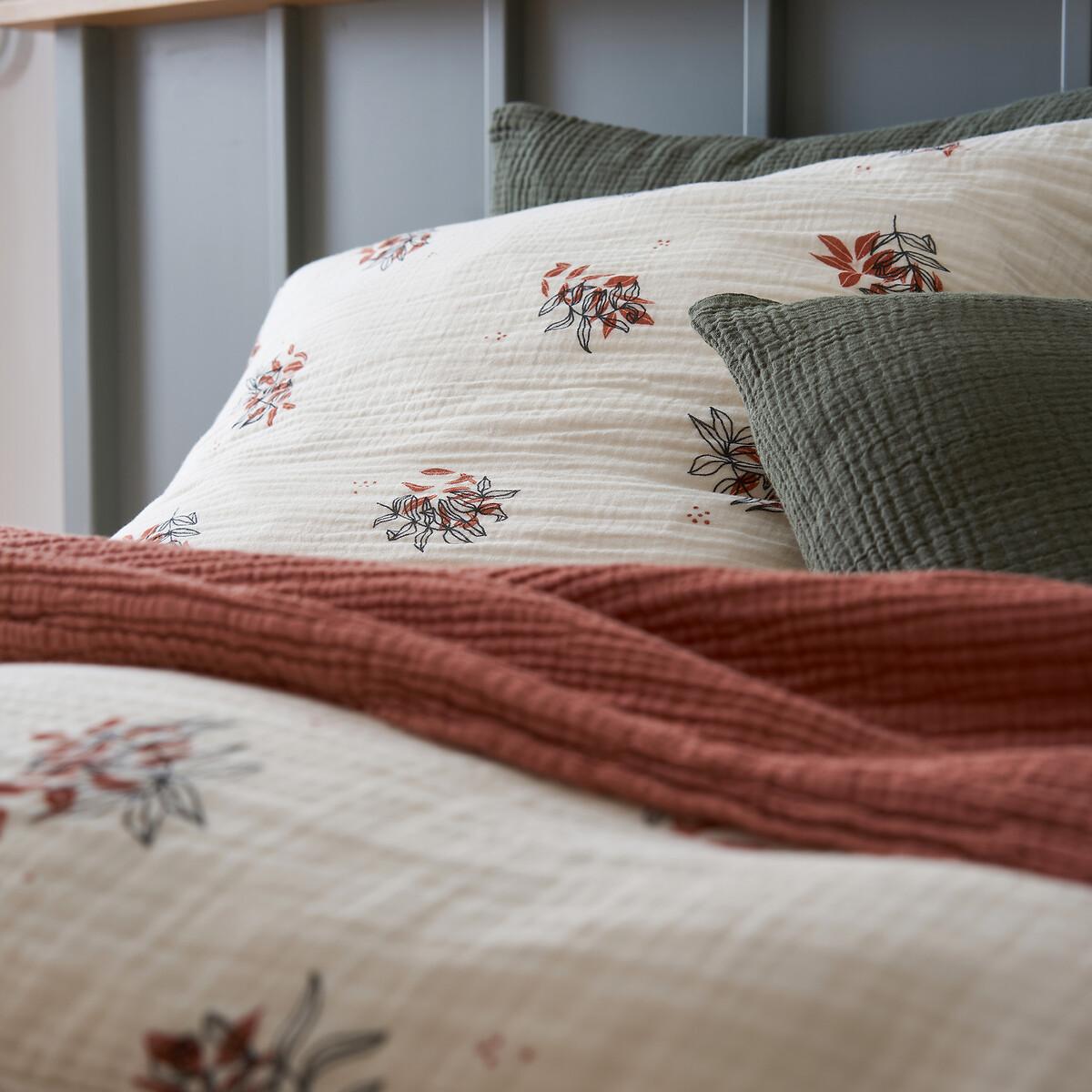 Heading for the English countryside... This bedding features an abundance of stylised plant motifs, in a charming and rural spirit. Designed by La Redoute Interiors. Cotton muslin is light, supple and super soft. Naturally textured, they do not require ironing and become more beautiful over time. Product Details • 100% cotton, 135g/m2 • Cotton muslin • Plant print on both sides • Straight buttoned hem Match this item with the rest of the bedding in the range for a stylish bedroom. And you can mix and match it with different colours and styles from our other bedding ranges when you want to change things up and create your own unique look. Care Advice • Machine washable at 60°C • By washing your laundry at 40°C instead of 60°C, you limit energy consumption • Product will regain its texture after tumble drying • The cotton muslin may show slight marks due to packaging creases. We recommend that you wash the product as soon as you receive it, and then tumble dry it to restore its look and the beautiful waffle effect. Dimensions • 140 x 200cm: Single • 200 x 200cm: Double • 240 x 220cm: King • 260 x 240cm: King • OEKO-TEX® Standard 100. Standard 100 certification by OEKO-TEX® tests textile products for harmful substances via an independent, international label.
