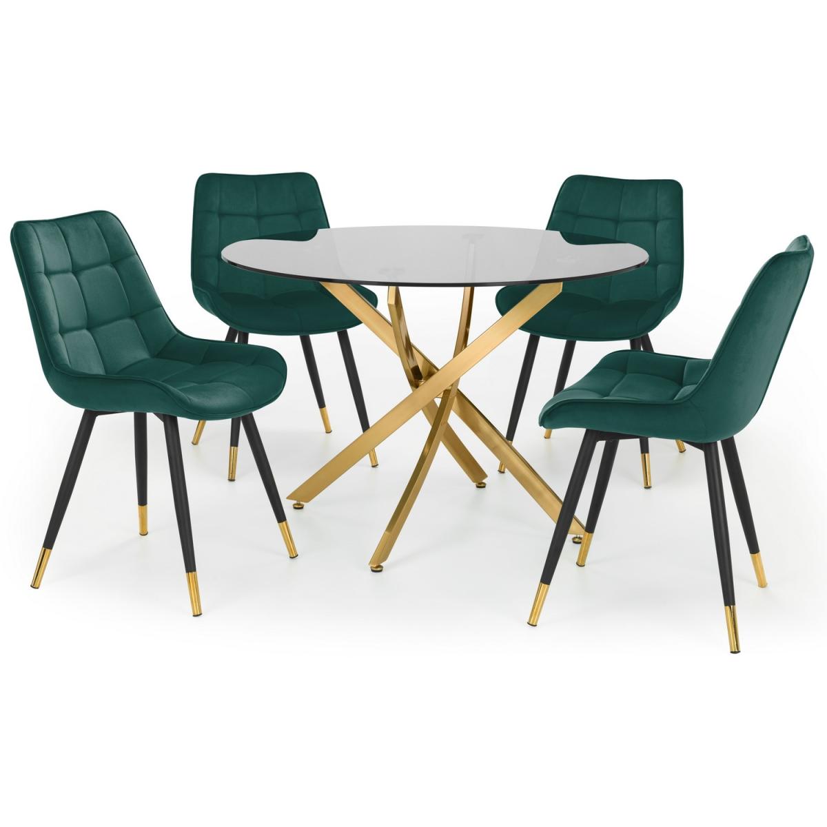 Montero is a strikingly elegant dining table which combines gold metal and glass to create a modern and stylish aesthetic. The intertwined legs leave a unique look which also provide a sturdy support for the table, making this a great, durable centre piece in any home. Partnered with Hadid Chairs.