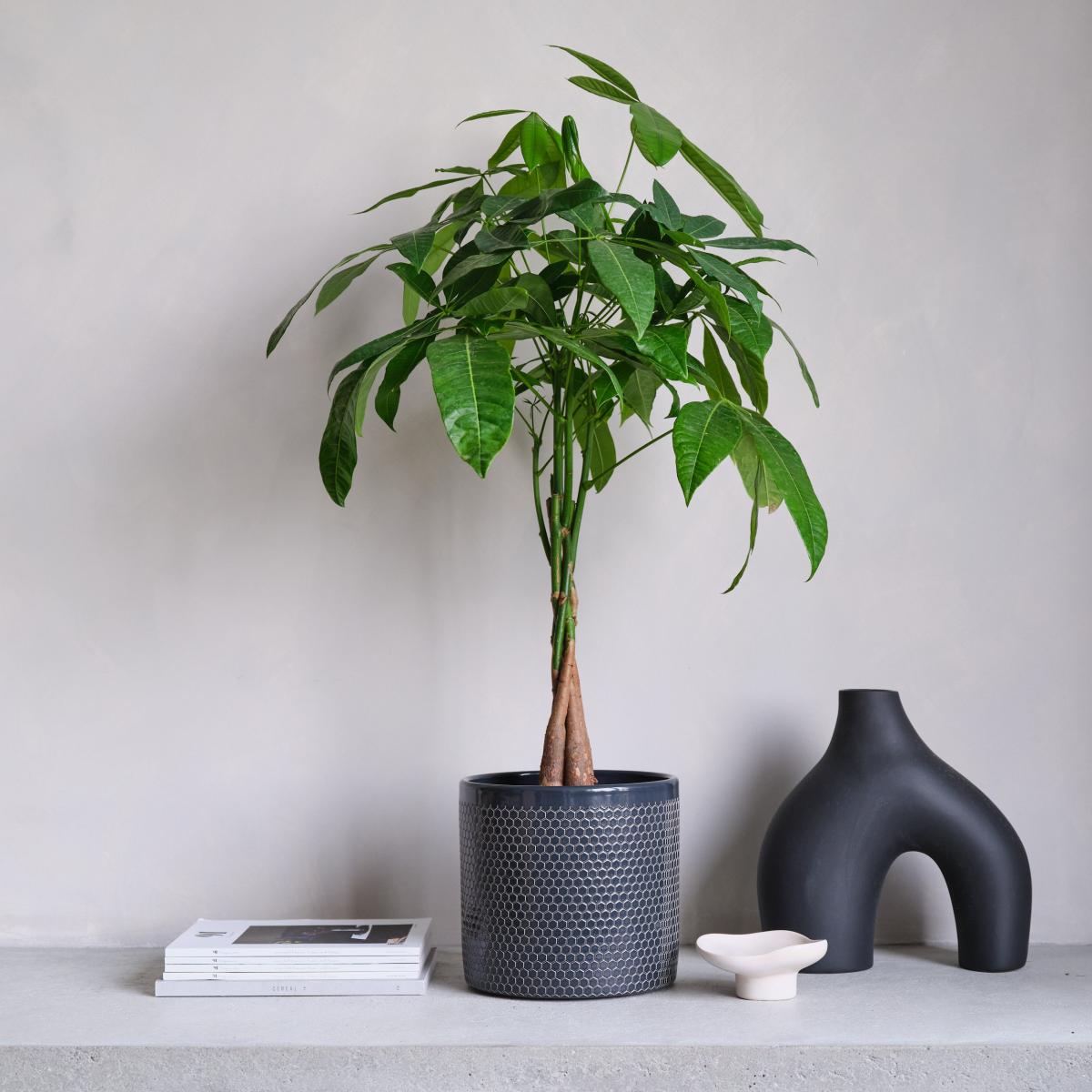 Money Tree House Plant in Capri Pot Ceramic Black