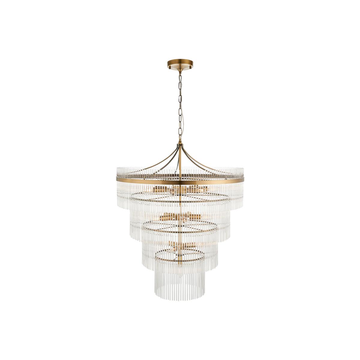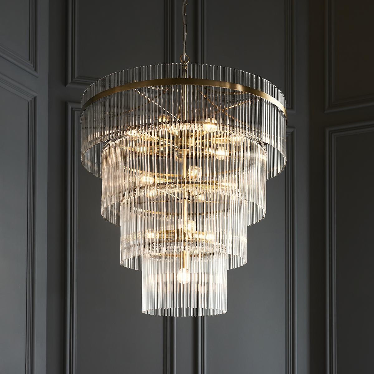 I love this pendant for its bold, multi-tiered design that makes a real statement in any room. The antique brass finish adds warmth and a sophisticated vintage touch, making it versatile enough to suit both classic and contemporary interiors. It's particularly effective over dining tables or in high-ceilinged spaces where its layered structure can really be appreciated. When styling, consider pairing it with minimalist furnishings to let the chandelier shine, or complement it with brass accents throughout the room for a cohesive look. Practical tip: use dimmable bulbs to control the mood and bring a touch of elegance to everyday lighting.