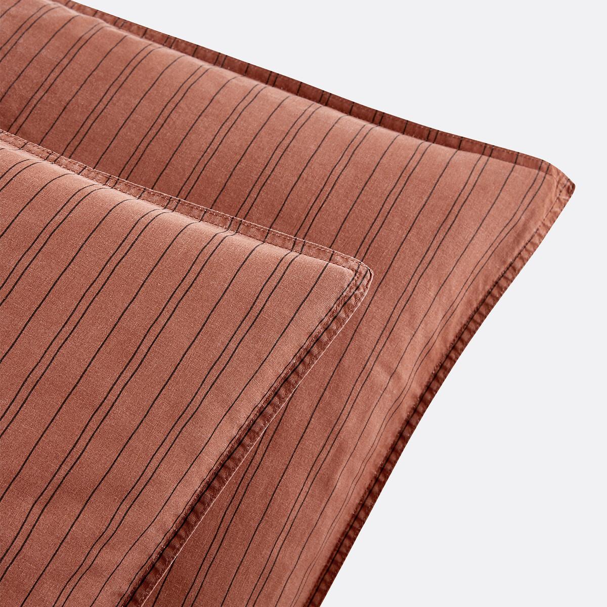 The Monille washed cotton pillowcase. Playing with graphic lines in its design, the Monille pillowcase brings a modern look to your bedroom. The washed cotton has been delicately bleached during its manufacture. Soft, supple and comfortable, it softens over time. Its slightly wrinkled appearance is incredibly on-trend, and it does not require ironing. Product Details • 100% cotton • 144 thread count • Patterned with stripes on both sides. Care Advice • Machine washable at 60°C • By washing your laundry at 40°C instead of 60°C, you limit energy consumption. Sizes • 50 x 70cm: Rectangular • 63 x 63cm: Square • OEKO-TEX® Standard 100. Standard 100 certification by OEKO-TEX® tests textile products for harmful substances via an independent, international label.