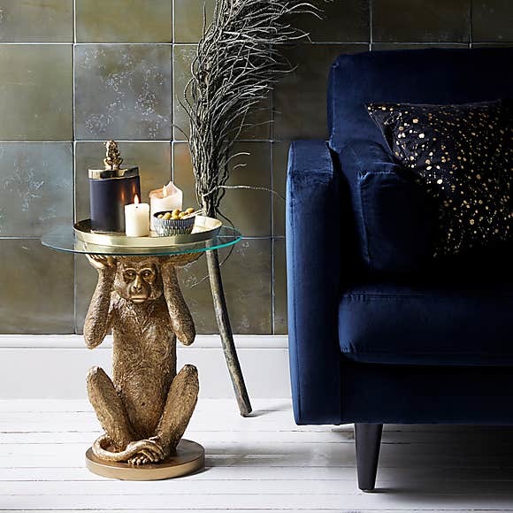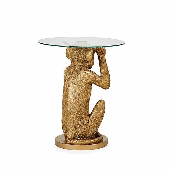 I love this side table because it combines playful design with a touch of luxury. The monkey base, finished in a rich gold, adds character and makes it a statement piece, especially when paired with a clear glass top for a contemporary touch. It works well in eclectic, boho, or modern interiors where quirky elements and metallic accents are embraced. For practical styling, try balancing the boldness of the gold with neutral or patterned accessories on top, such as a sleek lamp or a small plant, to keep it looking fresh and inviting. Keep the surrounding decor simple to let the piece really stand out, making it both functional and a conversational feature in your space.