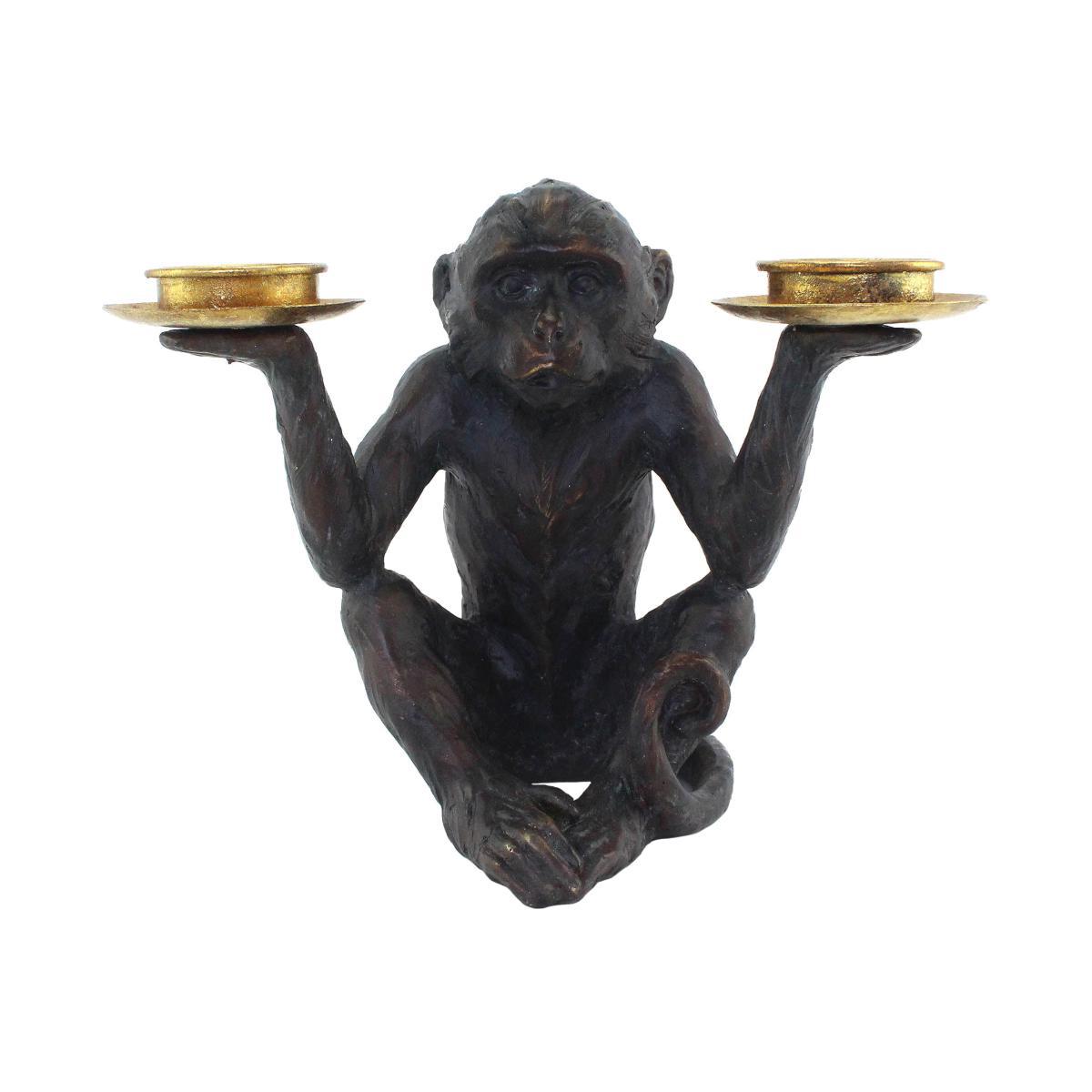 Holding up to two tealights, this quirky tealight holder features a creatively designed monkey. Decorated with a bronze finish with stylish gold holders, this ornament is crafted from durable polyresin and is easy to wipe clean.
