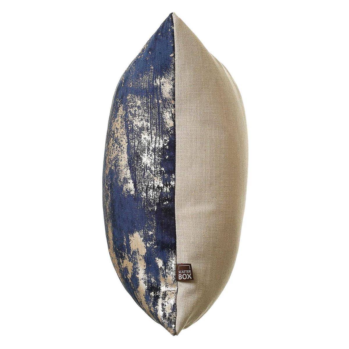 Looking simply stunning with an abstract design that creates notions of all things intergalactic, the Moonstruck Cushion blends blue hues with metallic gold to achieve a glorious effect that is sure to inspire. Place amongst plain scatters for a eye-catching centrepiece, or with other interesting designs for a bold and dramatic statement. Complete with a duck feather pad filling for softness and shape, this navy blue cushion ticks all of the right boxes.