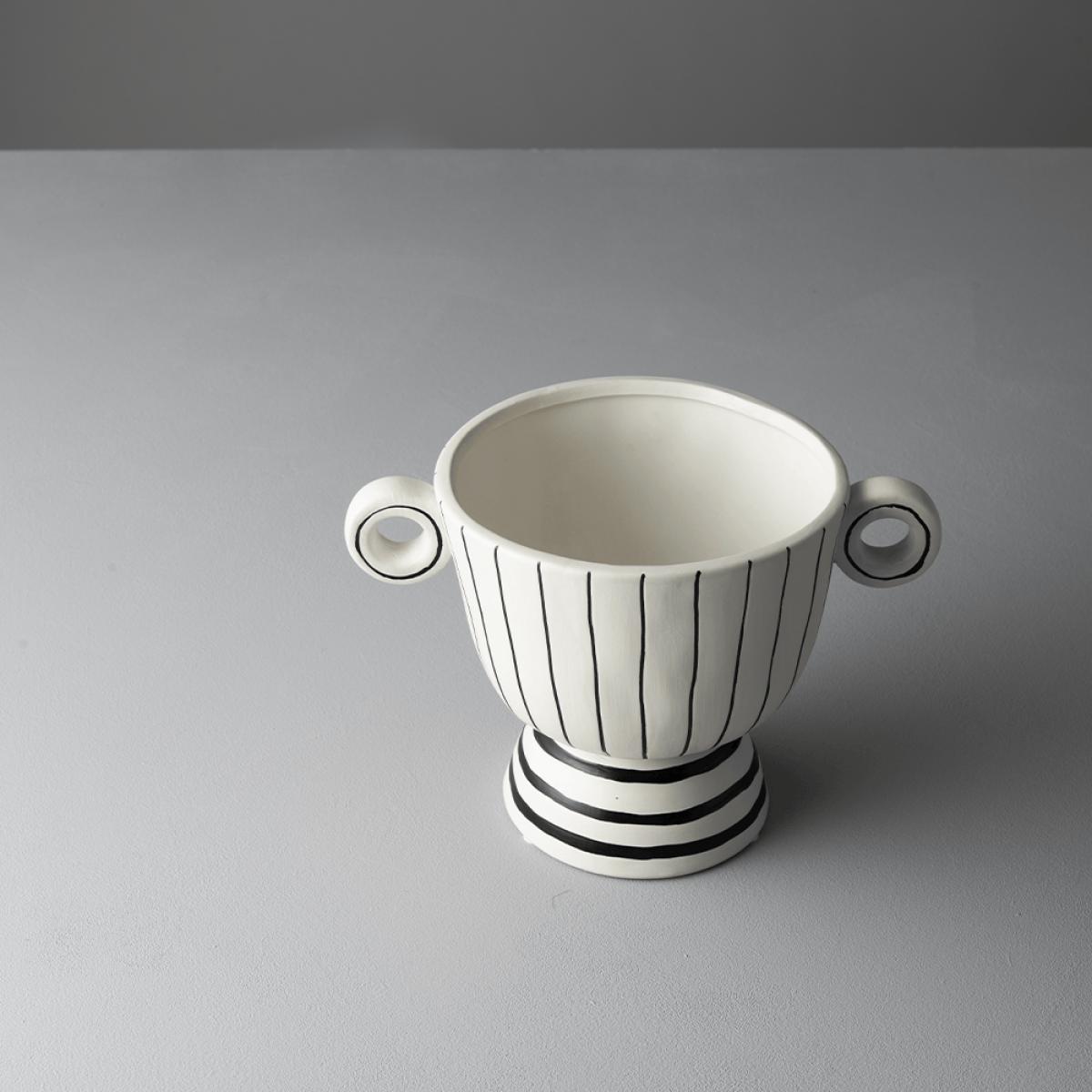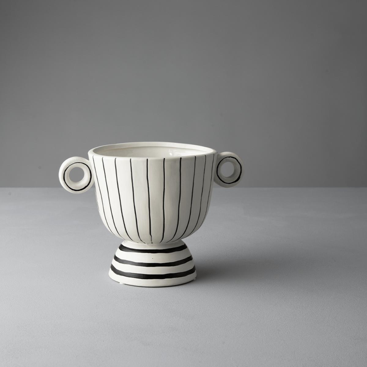 Our hand-painted black and white vases are crafted with care and attention to detail, each piece carries its own unique charm, showcasing slight imperfections that add character. Selected for its neutral monotone and artistic flair, this vase makes a statement in any setting.