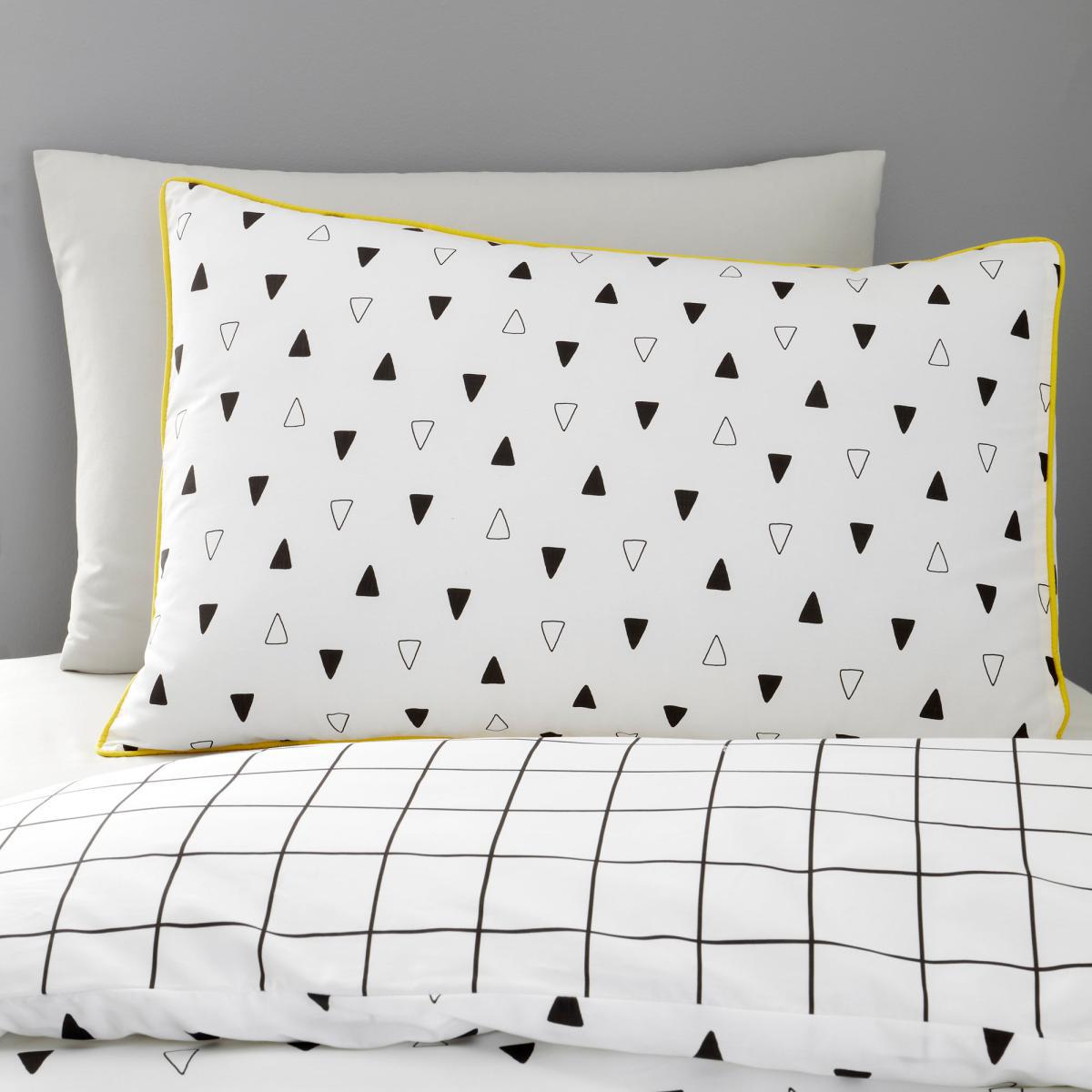 Boasting a striking geometric design with contrasting yellow piping, this bedding set would add a stylish touch to your little one's bedroom. With a fully reversible design, this bedding set is a twin pack making it ideal for sleepovers. Made from 100% cotton, this bedding is soft durable, and machine washable. Coordinating cushions and curtains are also available. This collection is verified by OEKO-TEX® and independently tested for harmful substances as well as manufactured using sustainable processes under socially responsible working conditions. MADE IN GREEN by OEKO-TEX® is a unique product label to trace the countries and production facilities - search the product label for more information.