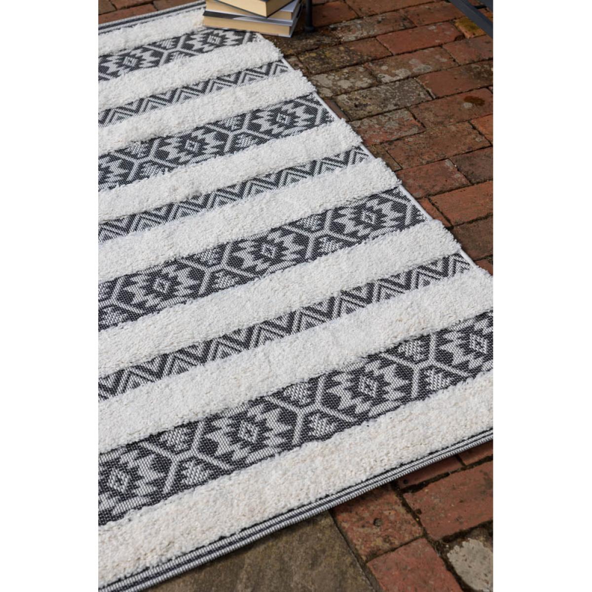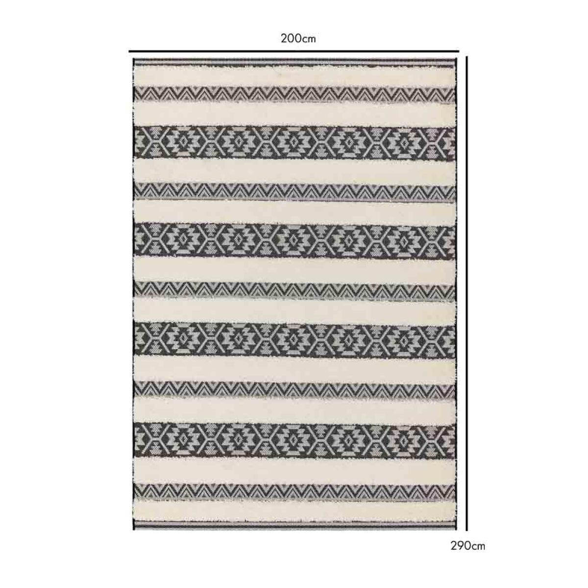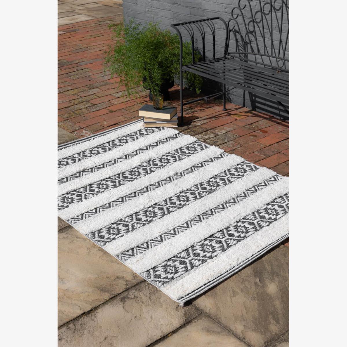 Introduce festival fashion to your garden with the gorgeous Monochrome Aztec Stripe Indoor/Outdoor Garden Rug. Our outdoor areas take on new importance in summer and become a multi-functional space to socialise, rest and reconnect with nature. As a result, outdoor living spaces are bigger than ever and provide the opportunity to enjoy the best of the summer season. From relaxing with a book to after-work drinks and al fresco dining with friends, we all gravitate to the garden when the sun is out. A beautiful garden rug is the secret to any successful outdoor living space. Borrowing inspiration from your interiors, a garden rug helps zone the seating areas of your garden and introduces a welcoming atmosphere. Celebrating a monochrome palette, the Aztec stripe boho rug combines rich texture with abstract Aztec patterns to create a statement. Perfect for home and away, this rug will look fabulous outside your tent on glamping adventures in the great outdoors! - Textured stripe indoor/outdoor rug in a monochrome colour palette - Machine Woven from 100% Polypropylene - Available in 3 sizes: Small (120x170cm), Medium (160x230cm) & Large (200x290) - Made from weather-resistant yarns in a high-low pile - Bring inside after outdoor use to protect the rug from bad weather
