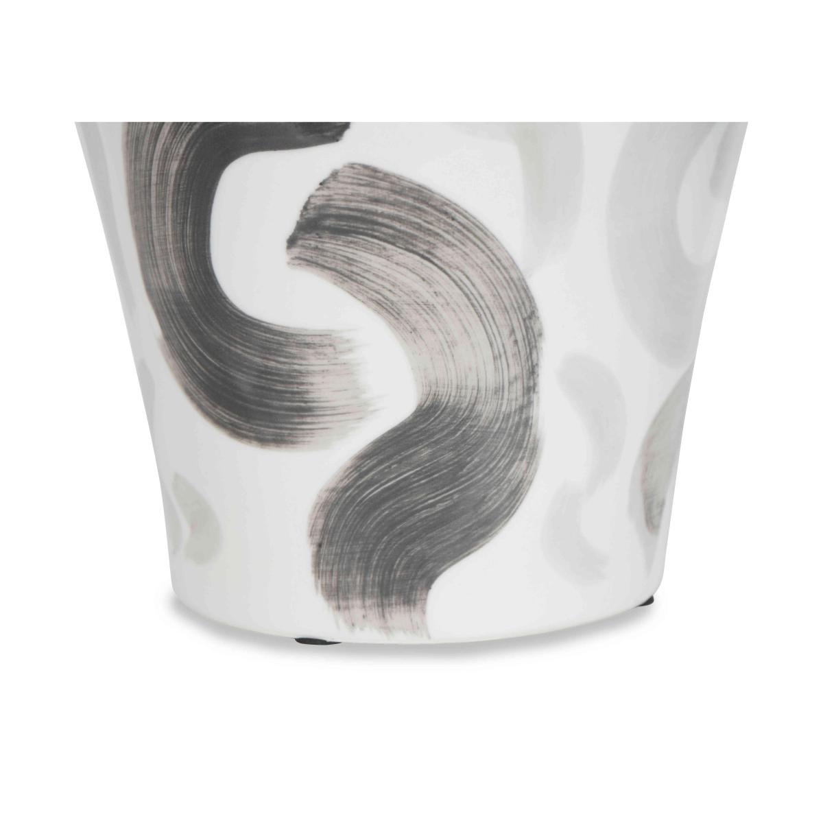 Whether or not you use it to hold flowers, this lovely vase makes a statement thanks to its modern abstract design and elegant curved silhouette. Why you'll love it The beautiful ceramic vase is perfect for an elegant floral display. Modern decorative style in ceramic. Classic curved silhouette. Minimalist monochromatic white, grey and black colour palette. Simple brushstroke embellishment. Finished with a high-shine glaze. This vase is part of the Furniture Village home accessories collection. What you need to know Ceramic. To clean, simply dust with a soft cloth. Avoid wax-based cleaning products. Base dimensions Height: 38 cm (15 in). Diameter: 24 cm (10 in).