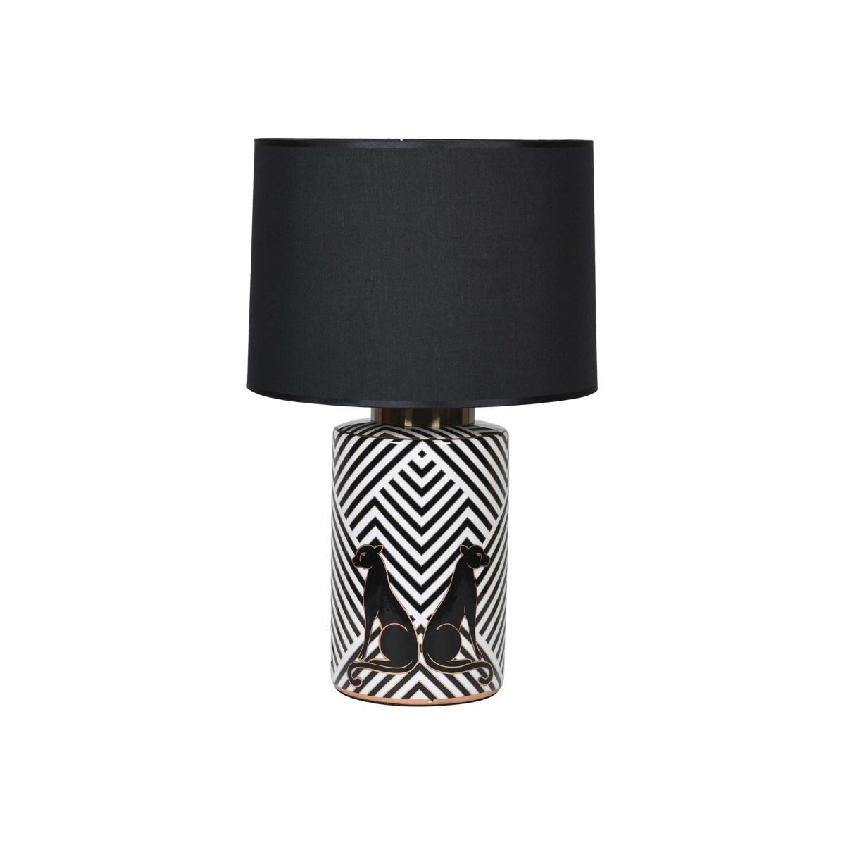 The Monochrome Leopard Table Lamp has a geometric pattern that wraps the whole way around the lamp and is finished with ornate leopard outlines that give this piece a cultural feel. The monochrome colour palette makes this a versatile piece that will become a stand out feature in your home.