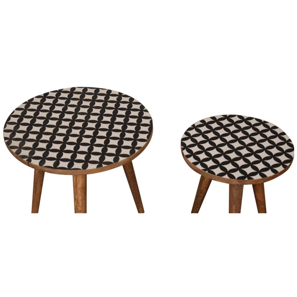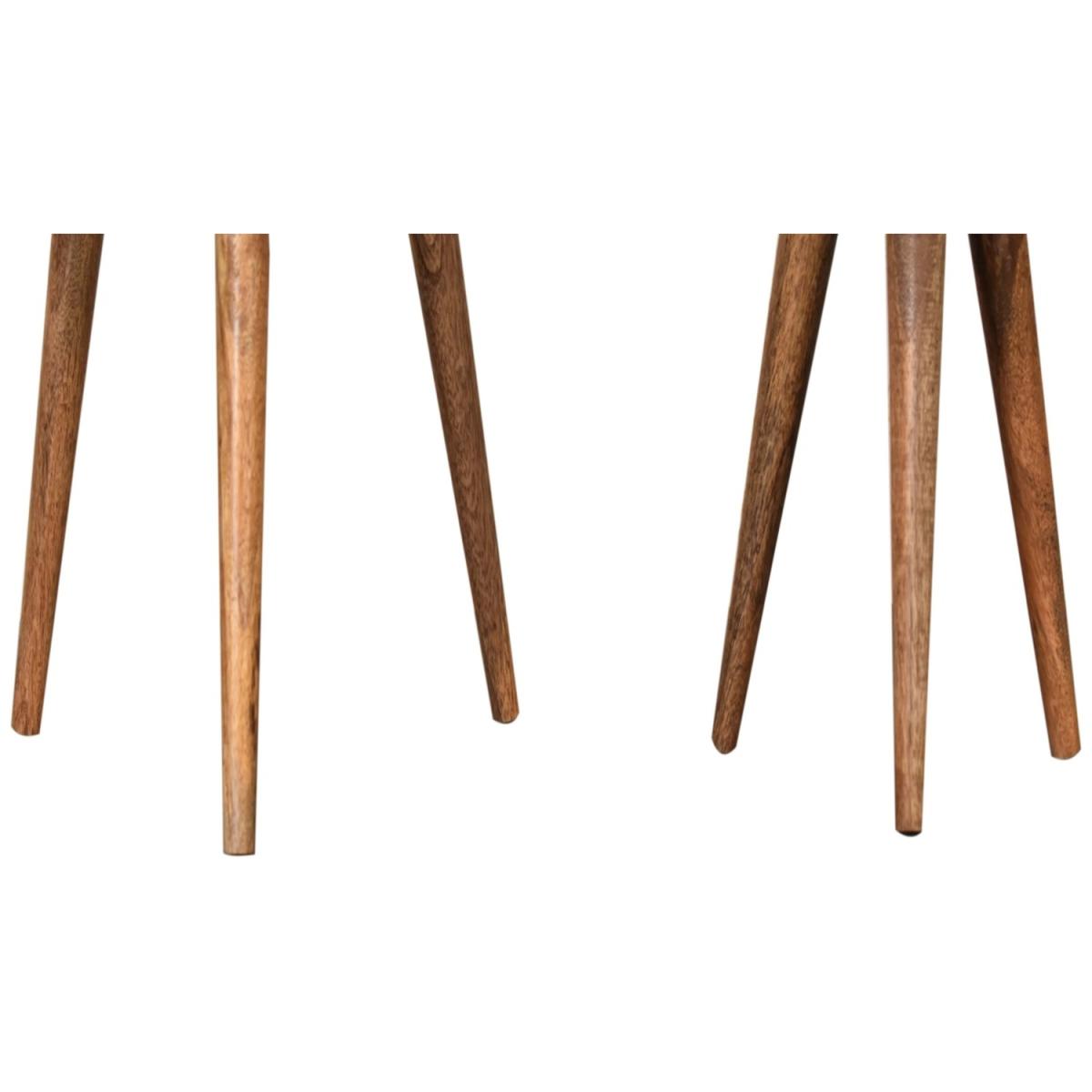This set of 2 Nordic style round stools are made of 100% mango wood and are perfect for seating for guests around a table or for everyday use. The stools also work as side tables, providing excellent versatility, with their compact size they are perfect for use in small spaces and can be tucked away under one another partially.