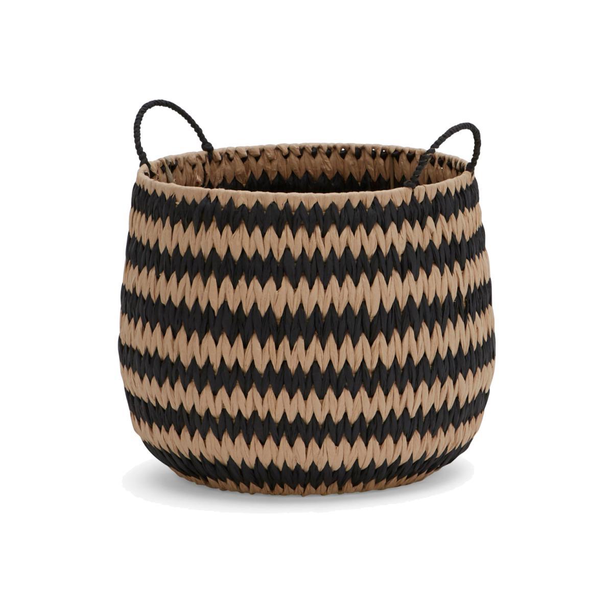 I really like this basket because of its versatile colour palette and interesting stripe pattern, which adds texture without overwhelming a space. It’s a great fit in contemporary or minimalist interiors, especially when used for organising magazines, throws, or even as a stylish fruit bowl. Its neutral beige and black tones mean it can easily slot into a range of colour schemes, from muted greys and whites to darker, more dramatic rooms. To style it well, consider pairing it with other organic textures like woven mats or linen baskets, and keep it on display rather than hidden away. Its handles also make it functional for moving it around your home as needed while maintaining a clean and ordered look.