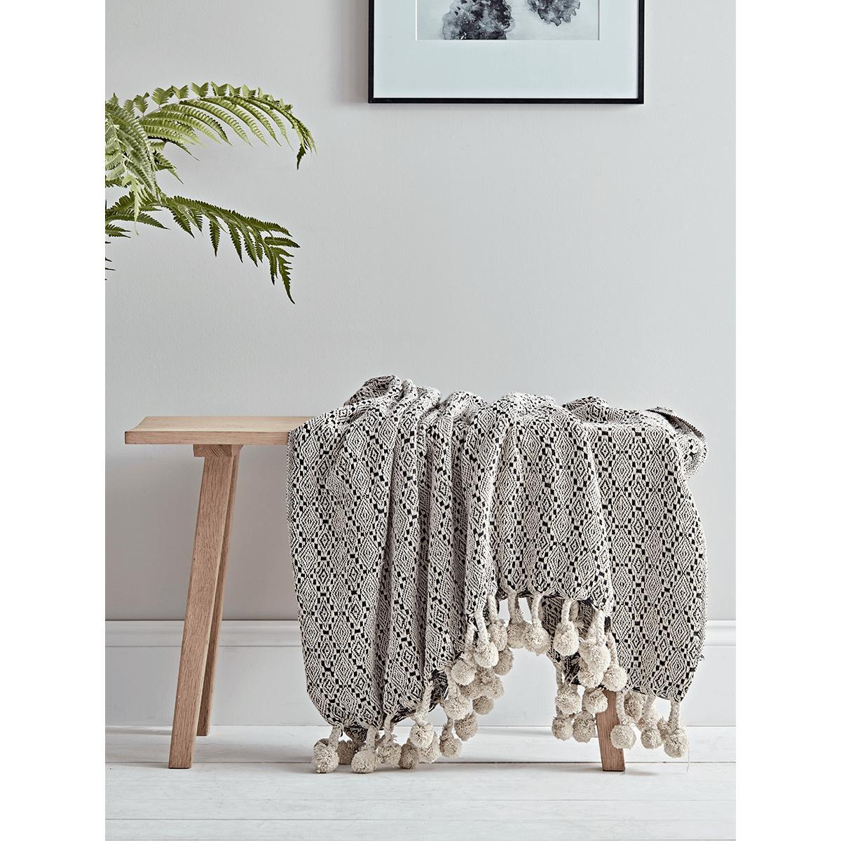 Crafted from pure cotton in a faded black and cream print with matching pom poms along the edges, our statement throw will bring a touch of boho style to your interior. This beautiful fine cotton throw has been hand loomed by artisans in India, complete with a beautiful striped pattern. Perfect for any room in the house, our playful pom pom throw is finished with raw edges for a relaxed, rustic look and looks great draped across your bed or a rattan chair.