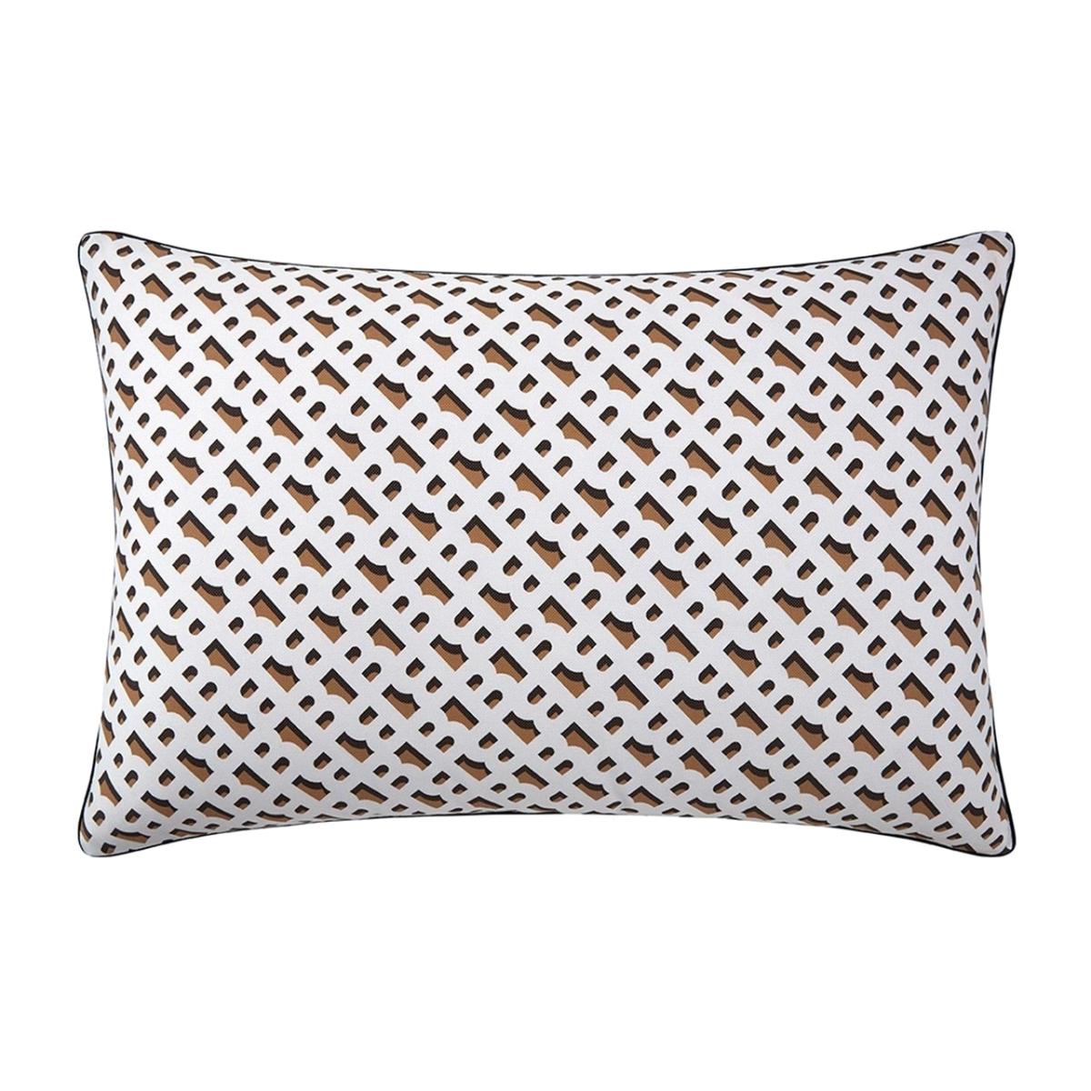I’m a fan of this monogram cover for its crisp lattice detail and neutral tones - it brings just the right amount of texture without shouting for attention. It works equally well in a pared-back, Scandi-inspired bedroom or layered on a dark velvet sofa in a more opulent living room. Styling tip: pair it with plain cushions in complementary shades (think soft grey or warm camel) and introduce a tactile element like a chunky knit throw. For a coherent scheme, repeat the geometric motif in a small accessory - perhaps a metal side table or cut-work lampshade.