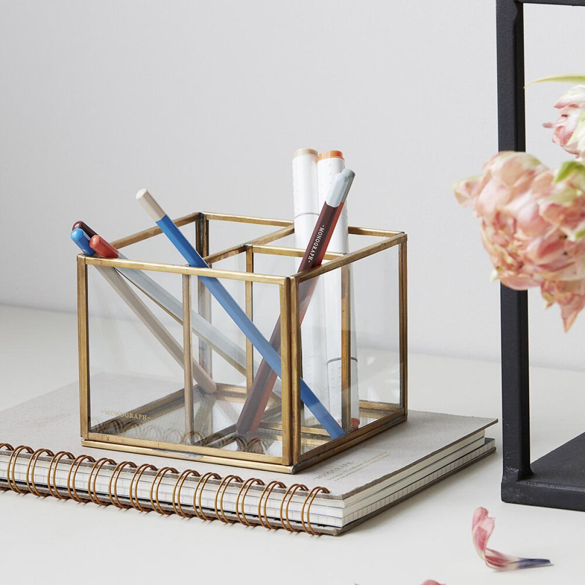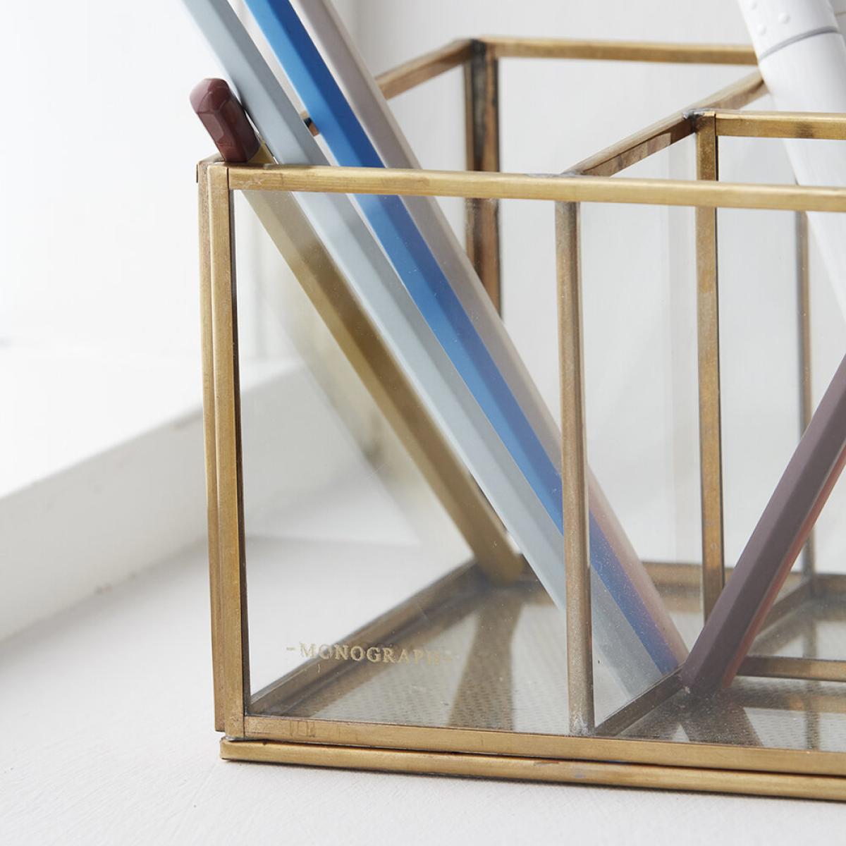 Update your work space with this storage box from Monograph. Featuring a minimalist design, it’s made from brass and glass and is ideal for storing everyday office essentials.