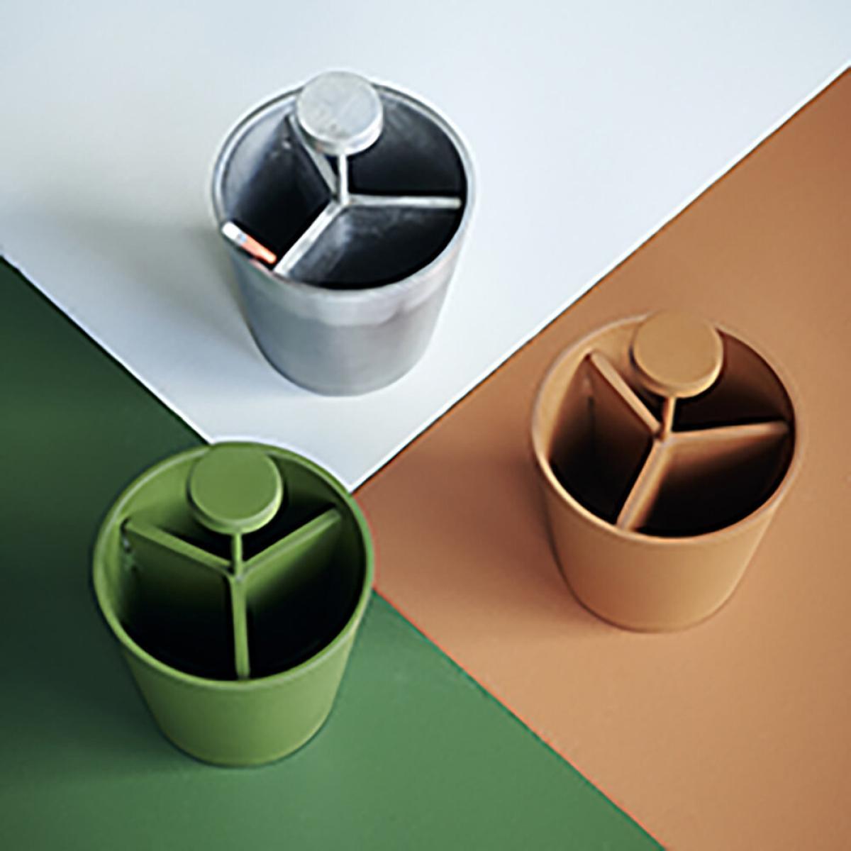 Keep your desk organised with this Mono storage pot from Monograph. Made from aluminium, it features three compartments and is available in a selection of shades.