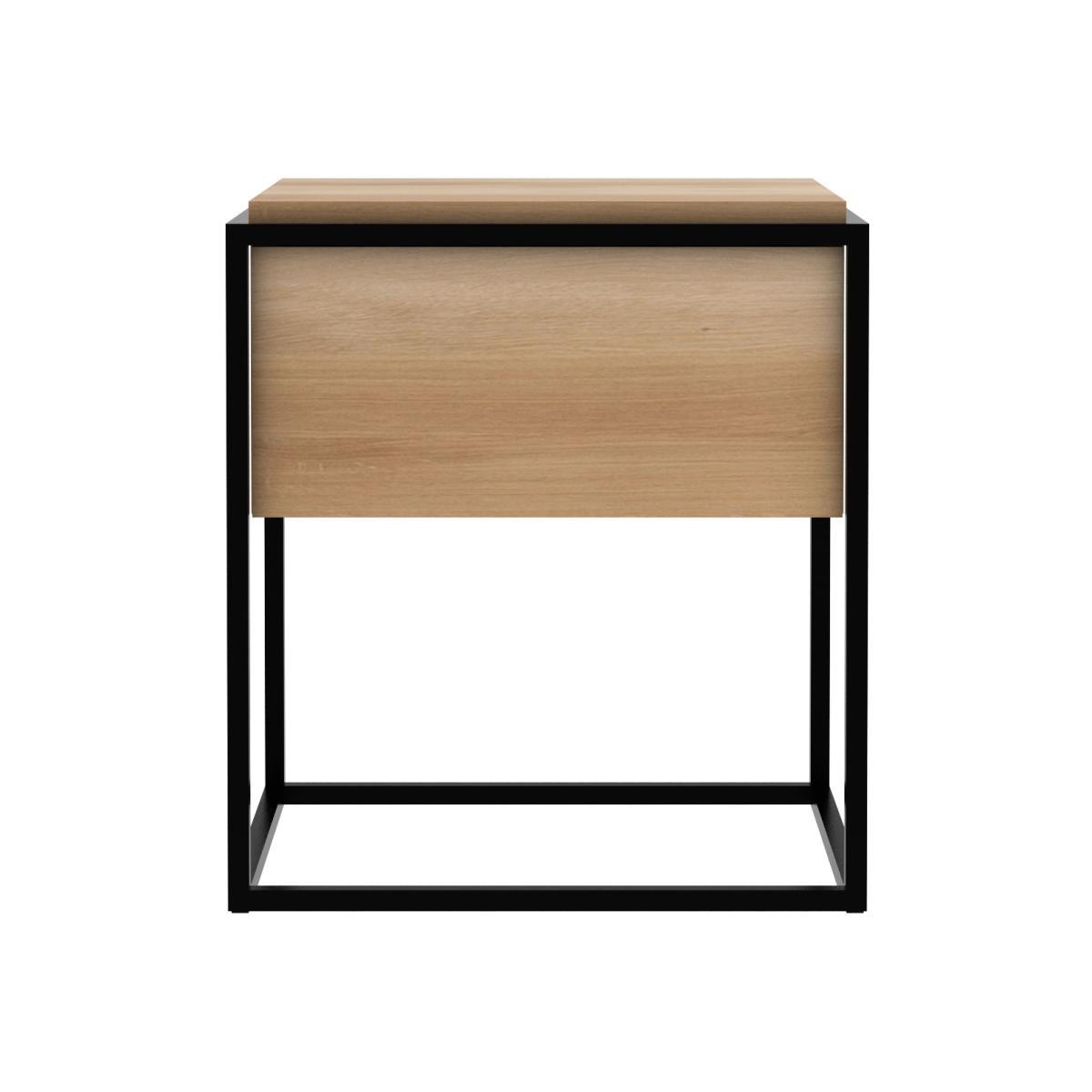 For twenty-five years, Belgian brand Ethnicraft has paid tribute to the beauty and authenticity of solid wood. Timeless, extremely strong and durable, these are quality pieces of furniture that age wonderfully and are passed down from generation to generation. Handcrafted, Ethnicraft furniture is the result of exceptional know-how. Behind the apparent simplicity of the design hides a constant search for innovation. Integrating advanced techniques into the creative process, each new design is worked out down to the smallest detail. Respectful of the environment, the wood used comes from sustainably, responsibly managed European forests (FSC Co. C certification which attests that the wood was produced with respect for the environment and social values). A sleek construction for this bedside table consisting of a minimalist solid oak structure set in an ethereal black metal frame. Highly functional, this bedside table has a drawer with push-to-open opening (opens by simple pressure). The absence of a handle emphasises the clean aesthetic of this bedside table. Perfect in the bedroom, it can also be used as a sofa end.