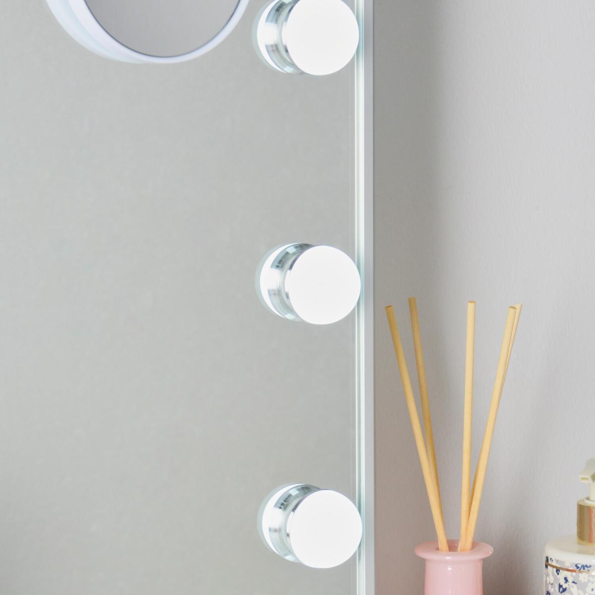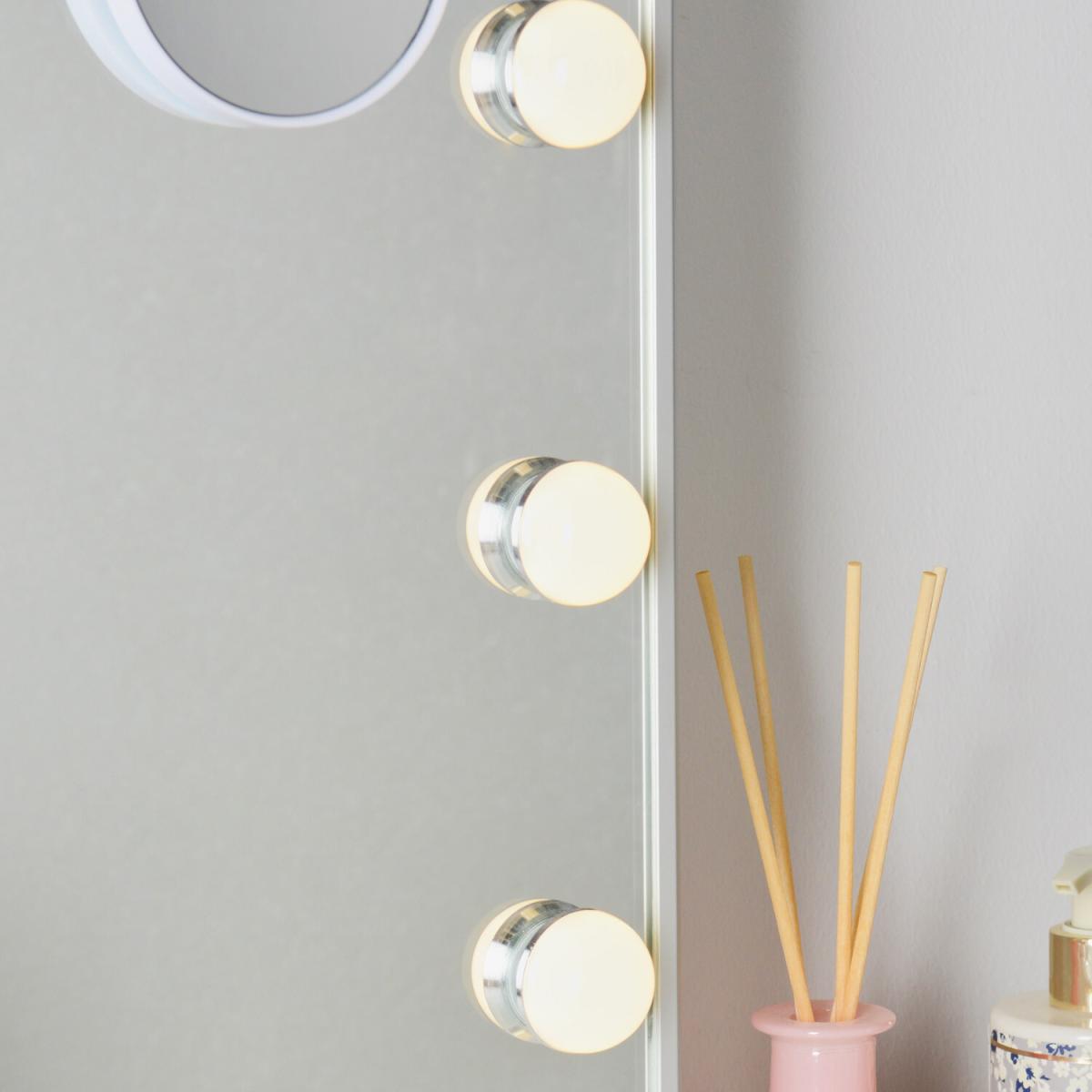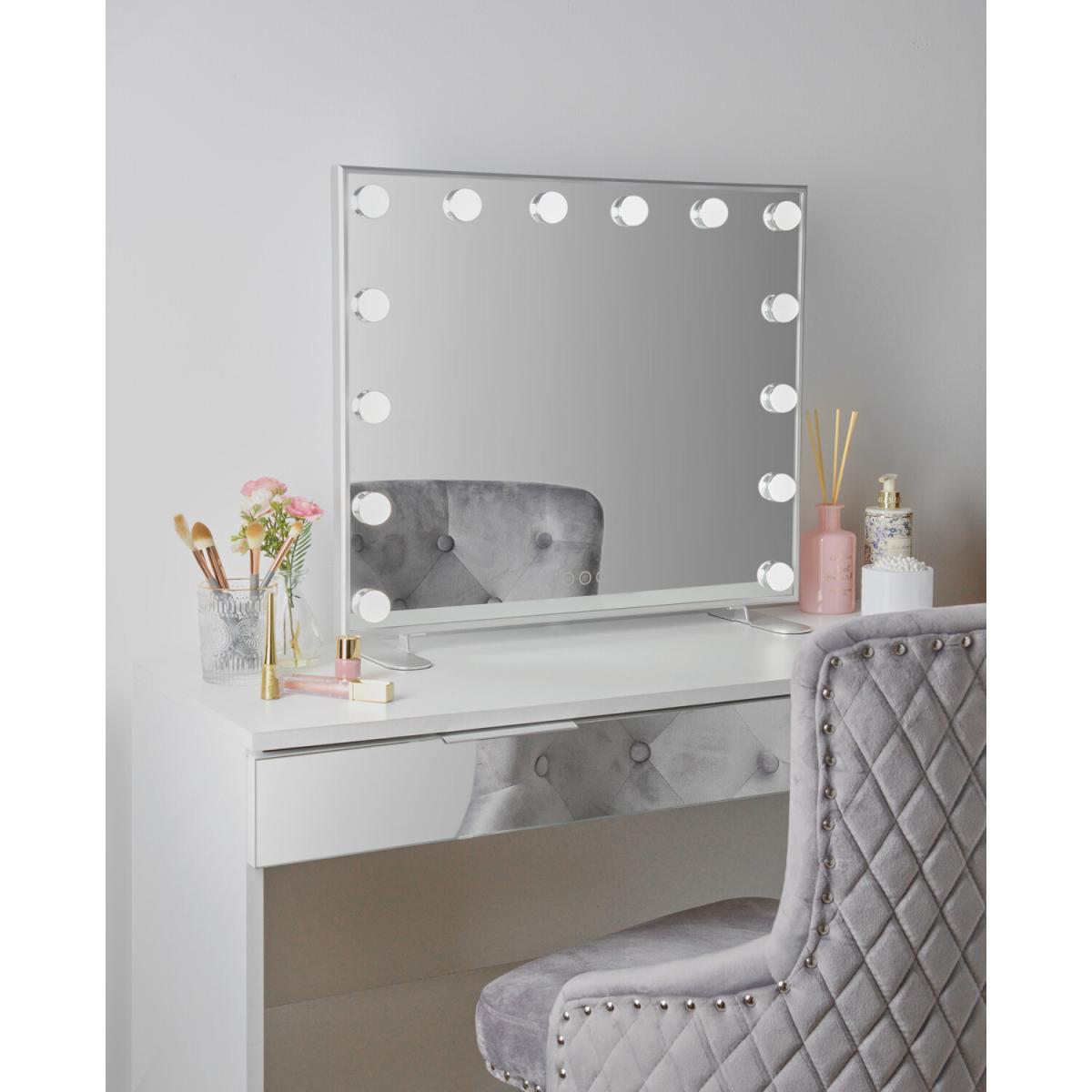 Inject a touch of glamour to your home with this gorgeous Monroe Bright Light Up LED Mirror. This mirror has a sleek and stylish design finished with LED lights for a true Old Hollywood feel in your space. Totally unique in its design, the Monroe Mirror has USB-A and USB-C charging points that are ideal for phones and small accessories for your convenience. With touch screen controls, you can dim the lights or make them cool or warm to suit your needs. Quick and easy to step up, this mirror also comes with a free 10x magnifying mirror. Whether you're using it for your dressing table or hanging it up on your wall, this magnificent mirror is a great addition to any home.