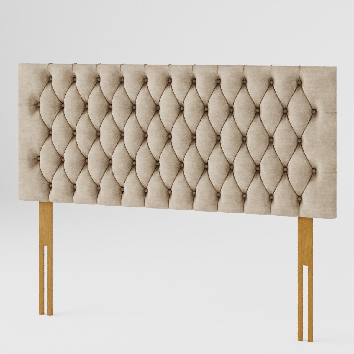 * Manufactured in the UK* Beautiful, chesterfield inspired headboard design* Hand upholstered with deep padding* Solid mahogany struts* 60cm headboard panel height * Compatible with standard size UK bed bases and divans Elevate your sleeping sanctuary by dressing the head of your bed with this contemporary headboard. The Monroe Fabric Headboard exudes style with its hand-finished, intricate details. The elegant deep padded headboard features a Chesterfield inspired design and handmade fabric buttons. This one has a kimiyo linen fabric which finishes the headboard off in the most sophisticated way. The headboard is sure to complement your home décor whether that be traditional or contemporary. With a choice of colour options, you are sure to find the best one to suit your bedroom style. Handcrafted, this headboard features a 15mm thick wooden panel that has been supplied with strong mahogany struts to ensure sturdiness once installed. You can sit up and read a book in bed with comfort as the headboard has a comfortable 40mm deep polyester padding. The hard-wearing, supple fabrics are designed to withstand long term use. Aspire take great care in constructing their headboards from start to finish. They take pride in their precision work which shows in the fabulous finish and intricate design details of their headboards. The headboards are available from single to super king sizes, and it is suitable for all standard bed bases.