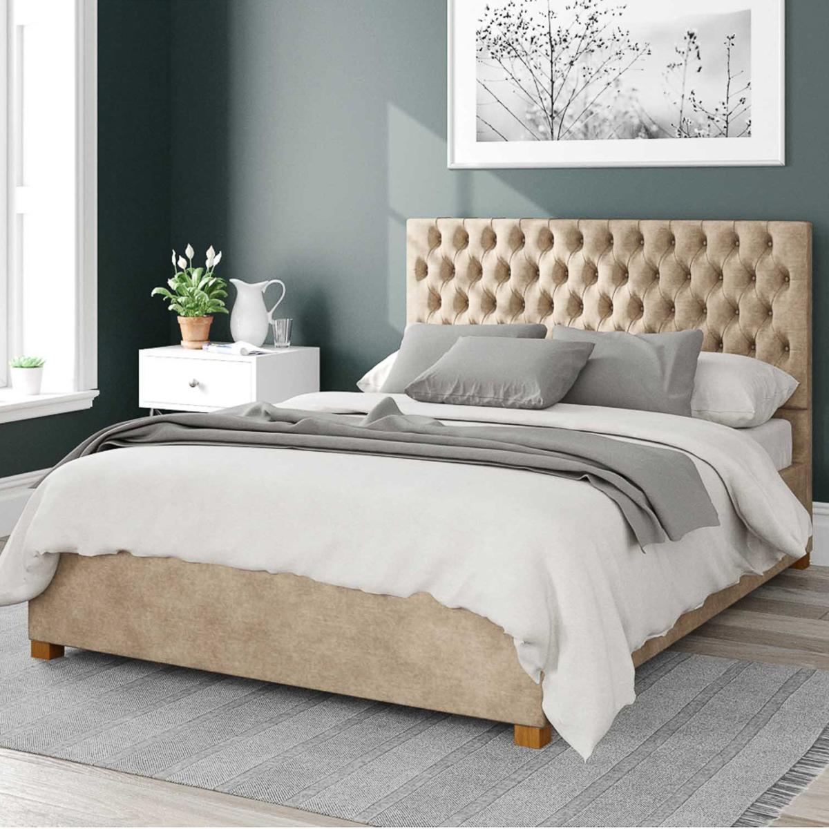 * Large storage area with fabric dust protection sheet* Hands free access to storage (mattresses up to 60kg)* Chesterfield inspired headboard design* Kimyo linen fabric* Hand upholstered with deep padding* Solid hardwood feet* Manufactured in the UK* Different colour options available The ultimate storage solution for your smaller bedroom space - The Monroe Fabric Ottoman Bed. It has been made with intricate details and a Chesterfield inspired look, perfect for adding a grand look into your bedroom. The deep padded headboard boasts a sleek and clean aesthetic, while the stylish solid hard wood feet add a touch of elegance. With its gas lift pistons, the ottoman bed provides ample storage space that can be easily accessed with minimal effort. Once the mechanism is open, it will hold in place, allowing for hands-free access to the spacious storage area. For your added convenience, the bed comes complete with a dust sheet to keep the storage area clean. It's worth noting that the storage area is not a boarded base. To provide you with the ultimate comfort and support, the bed features quality spring slats, ensuring you have a good night's sleep. And with a mechanism capable of lifting a mattress weighing up to 60kg, you can rest easy knowing you're getting the best in practicality and durability. The bed is supplied flat pack, and assembly is made easier with two people. It takes just 1-2 hours to assemble and meets all UK safety standards. We've also gone above and beyond by conducting non-mandatory structural testing, giving you peace of mind knowing your new bed is built to last.