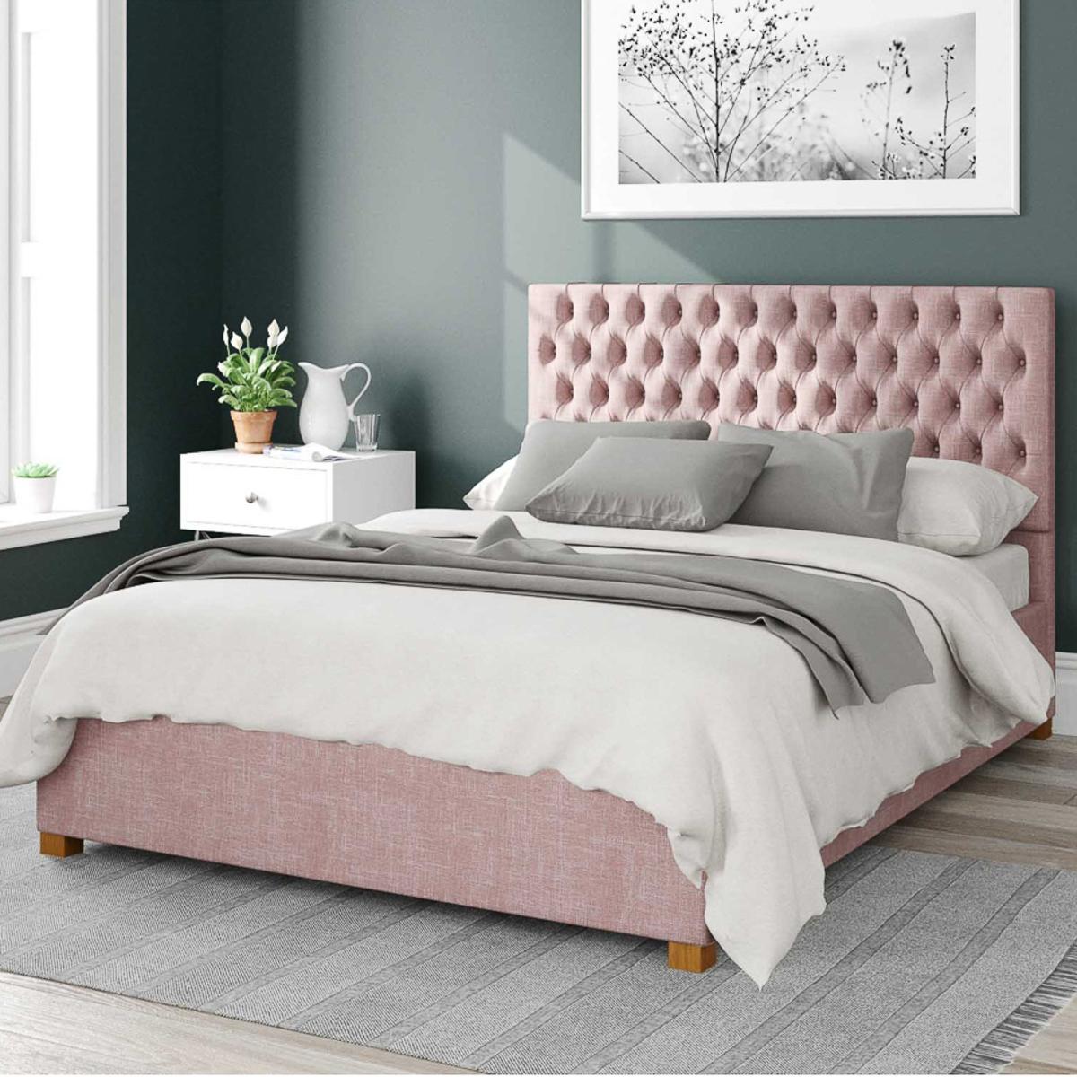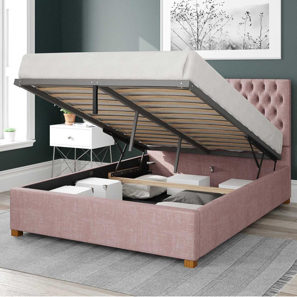 * Large storage area with fabric dust protection sheet* Hands free access to storage (mattresses up to 60kg)* Chesterfield inspired headboard design* Pure pastel cotton fabric* Hand upholstered with deep padding* Solid hardwood feet* Manufactured in the UK* Different colour options available With pastel colours, your room will look brighter and even more beautiful! So why not get that extra storage space by adding one of these ottoman beds into your bedroom? We know it would look good! The Monroe Fabric Ottoman Bed has been made with intricate details and a Chesterfield inspired look, perfect for adding a grand look into your bedroom. The deep padded headboard boasts a sleek and clean aesthetic, while the stylish solid hard wood feet add a touch of elegance. With its gas lift pistons, the ottoman bed provides ample storage space that can be easily accessed with minimal effort. Once the mechanism is open, it will hold in place, allowing for hands-free access to the spacious storage area. For your added convenience, the bed comes complete with a dust sheet to keep the storage area clean. It's worth noting that the storage area is not a boarded base. To provide you with the ultimate comfort and support, the bed features quality spring slats, ensuring you have a good night's sleep. And with a mechanism capable of lifting a mattress weighing up to 60kg, you can rest easy knowing you're getting the best in practicality and durability. The bed is supplied flat pack, and assembly is made easier with two people. It takes just 1-2 hours to assemble and meets all UK safety standards. We've also gone above and beyond by conducting non-mandatory structural testing, giving you peace of mind knowing your new bed is built to last.