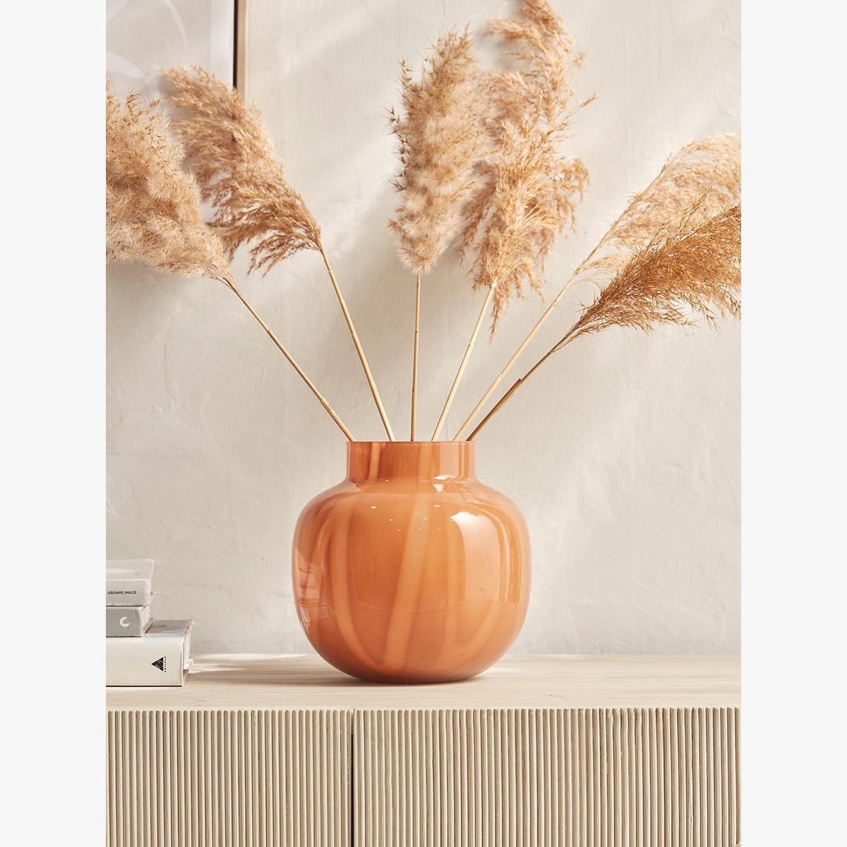 In a simple bowl shape, our Mons vase comes in a beautiful burnt orange colour with lighter streaks.  This vase adds a pop of colour, providing a warm touch of contemporary to your home. Pair with our dried mix spring bouquet for the perfect match.