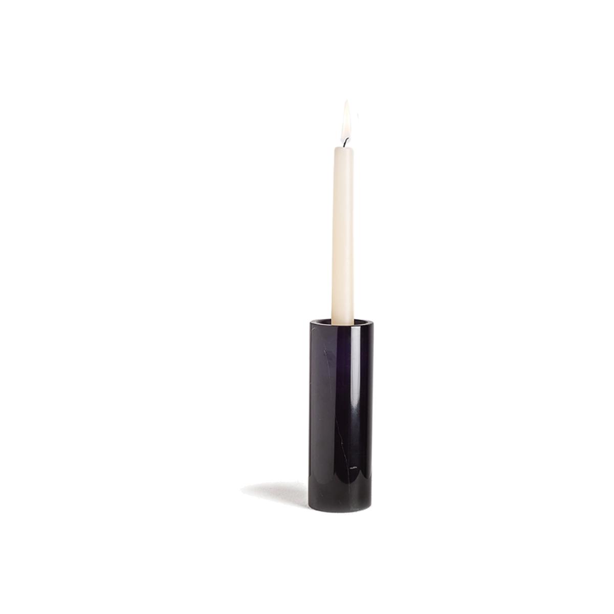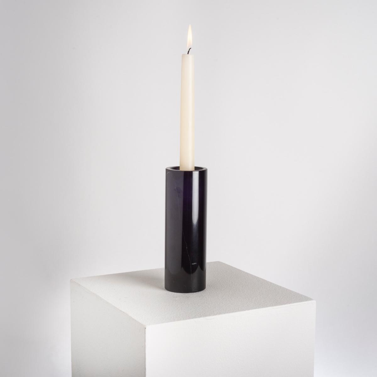Solid marble cylinder stylized and hand carved to be a great candlestick holder. On the table the candlestick monsieur dresses elegantly. A dinner by the light of one or more candles, a perfect accessory that you cannot miss.