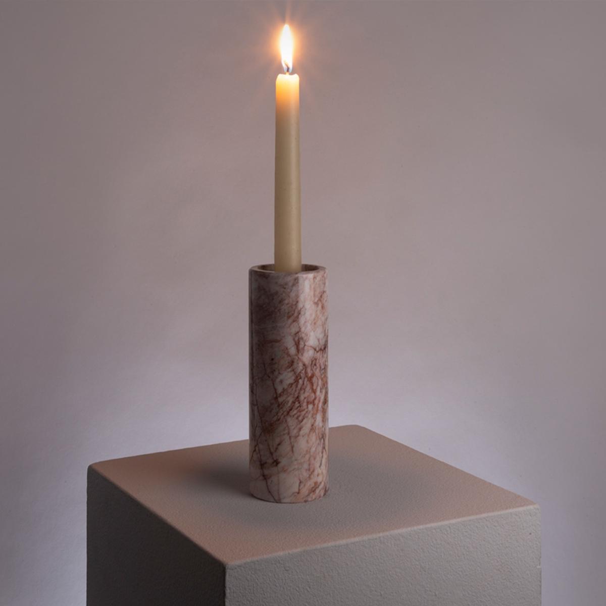 Solid marble cylinder stylized and hand carved to be a great candlestick holder. On the table the candlestick monsieur dresses elegantly. A dinner by the light of one or more candles, a perfect accessory that you cannot miss.