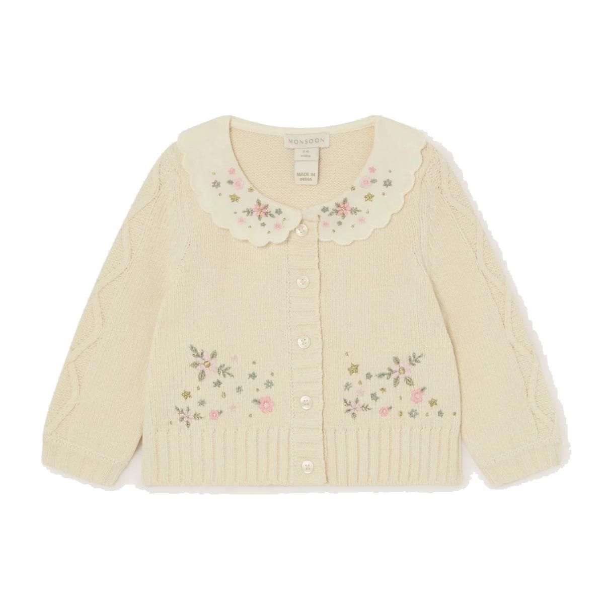 Monsoon Baby Cotton Floral Cardigan, Cream