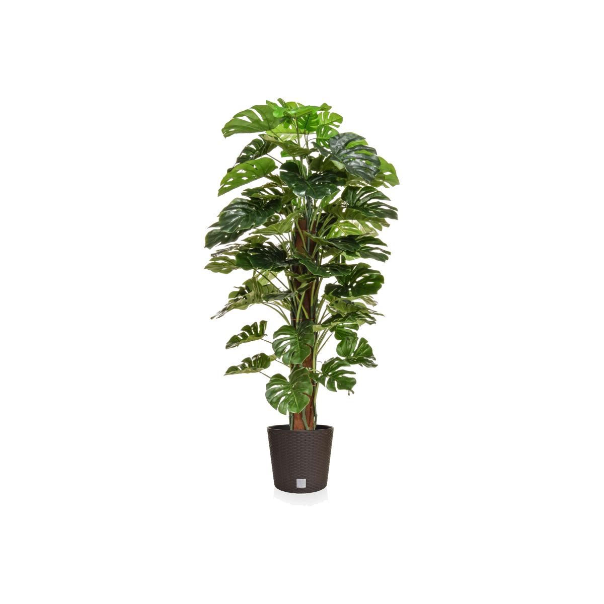 With its trademark leaves, the monstera plant – also known as a Swiss cheese plant – makes for a very stylish home accessory. This one’s even better as it requires absolutely no maintenance. Why you'll love it Bold and beautiful, this fabulous monstera is actually an artificial plant. Year-round lush greenery without the maintenance. Ultra-realistic – it looks exactly like a real monstera tree. Natural wood stem for added authenticity. Comes complete in a stylishly simple black plant pot. Very durable construction. Only available online at Furniture Village. This artificial plant is part of the Furniture Village home accessories collection. What you need to know For indoor use only. Clean periodically with a feather duster, microfibre cloth or damp cloth. Total dimensions Height: 150 cm (60 in). Depth: 70 cm (28 in). Width: 70 cm (28 in).