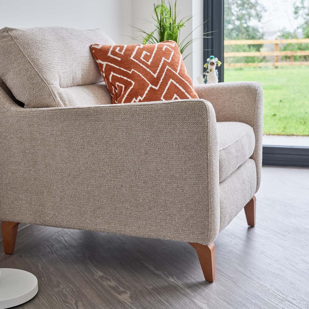 The Montana Chair is a great choice for adding a contemporary yet cosy touch to a variety of interiors. I love its neutral fabric, which makes it versatile and easy to style with both patterned and plain cushions, like the pop of orange in this setting. The Aqua CleanForever fabric is practical for households with pets or children, offering easy maintenance and durability. It works particularly well in relaxed living spaces, such as sitting rooms or reading nooks, but can also elevate a minimalist or Scandinavian-style interior with its simple, clean lines. For styling tips, consider pairing it with light woods, soft textiles, and understated accessories to keep the look fresh and inviting.