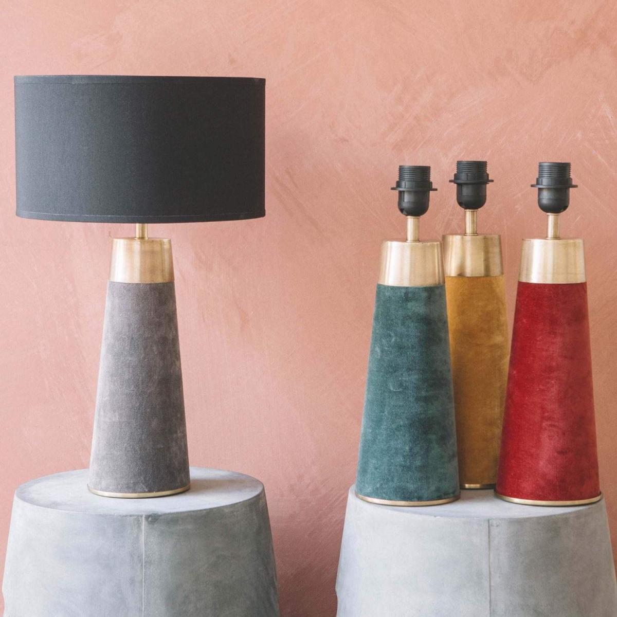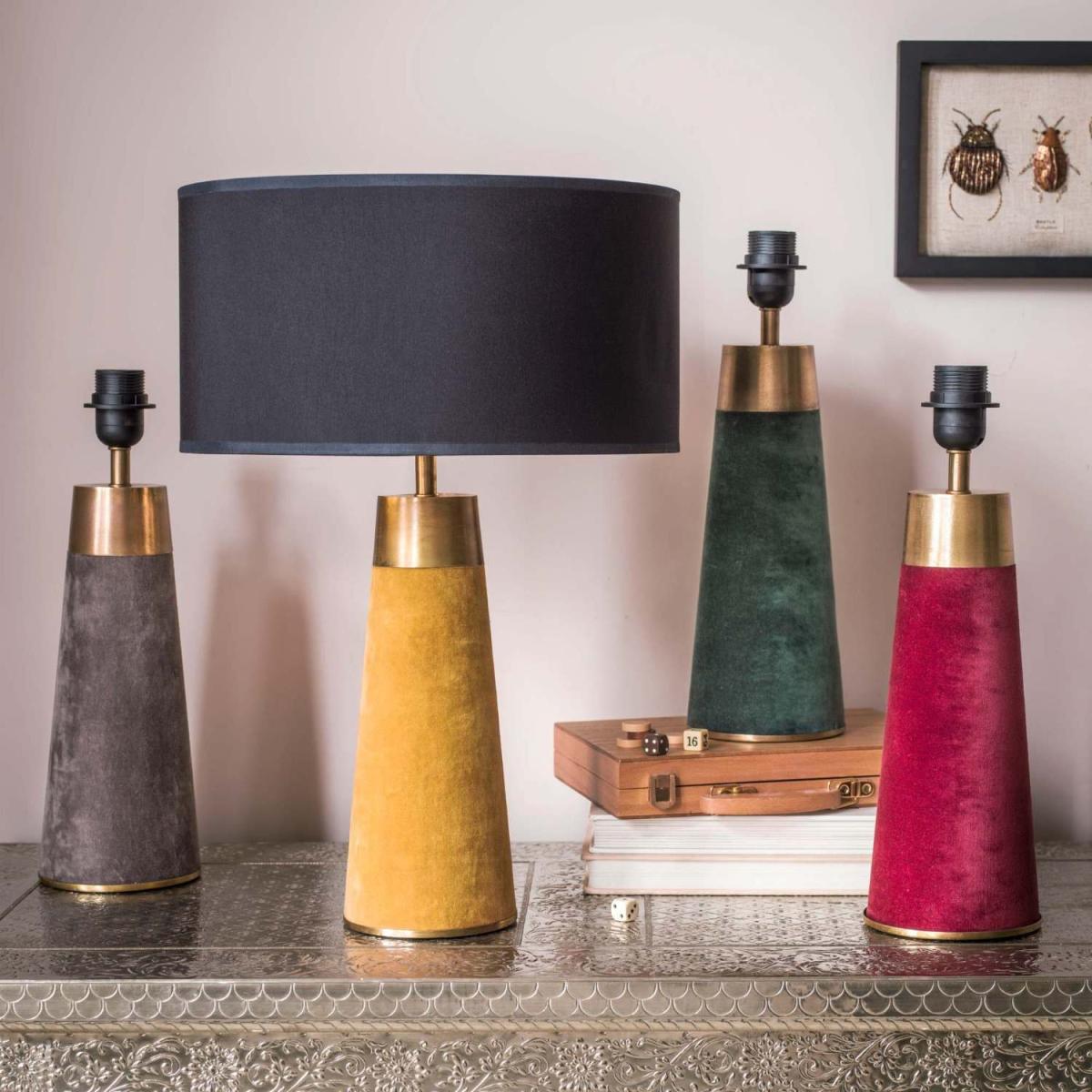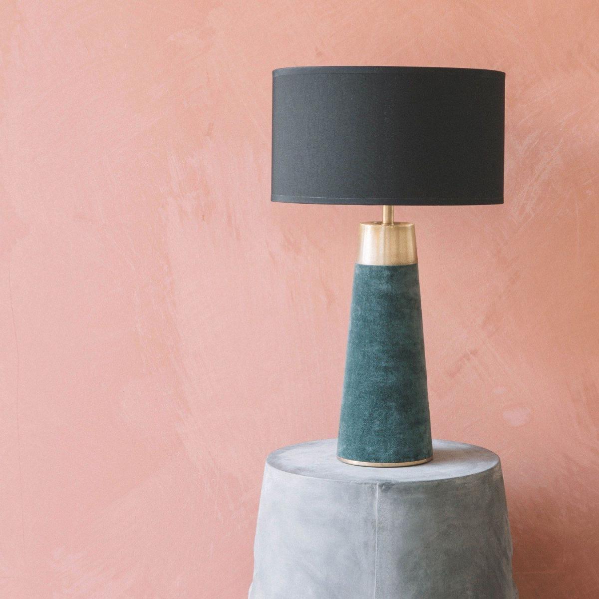 Complement vintage style interiors with our art deco inspired table lamps. With a luxurious velvet belt wrapped around a tapered iron base with gold details, our Montana lamps create a bold and vibrant look.