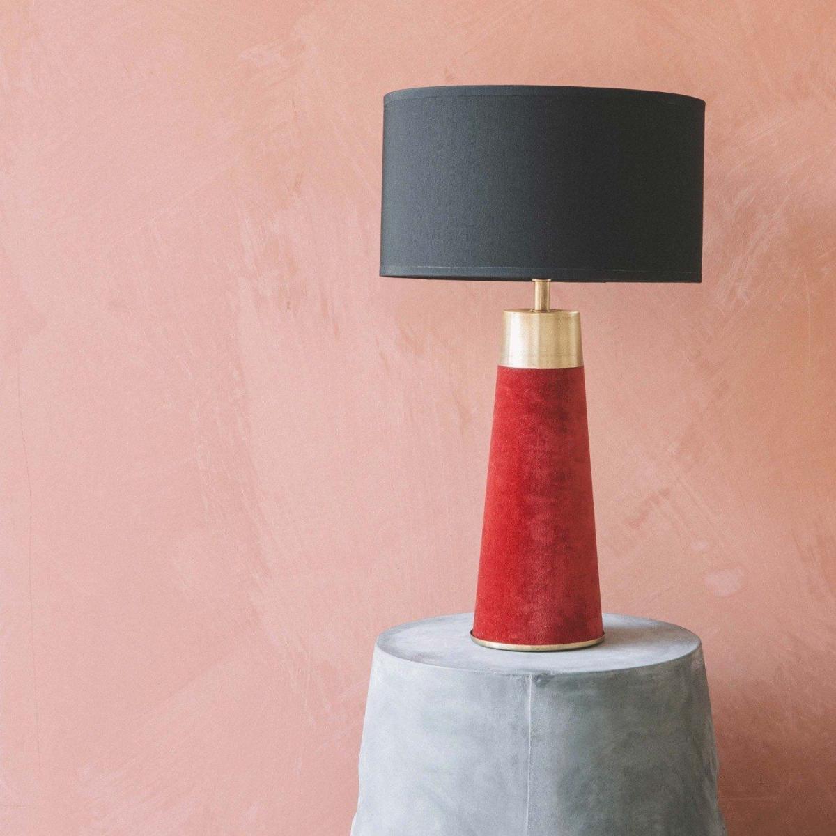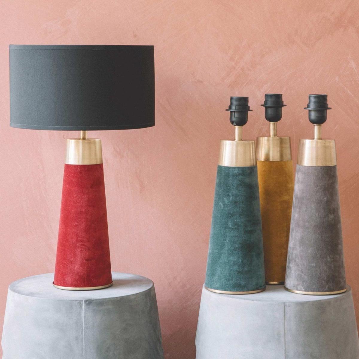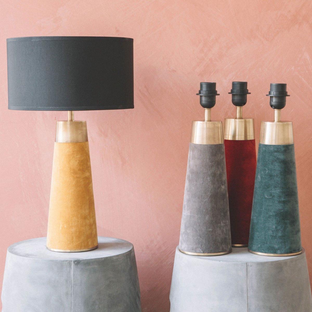 Complement vintage style interiors with our art deco inspired table lamps. With a luxurious velvet belt wrapped around a tapered iron base with gold details, our Montana lamps create a bold and vibrant look.