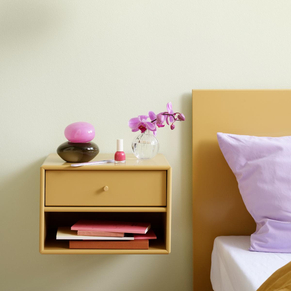 I love the Montana Dash bedside table for its bold colour and functional design, making it a versatile addition to various interiors. Its strong, clean lines work well in contemporary spaces but can also add a playful touch to more minimalist or eclectic rooms. The inclusion of the suspension feature provides practical storage options, perfect for keeping essentials close to hand without cluttering surfaces. For styling, consider pairing it with neutral bedding or décor to highlight the vibrant green, or use it as a statement piece in a scheme with other colour pops. It’s also practical for small bedrooms or areas where space efficiency is a priority, offering handy storage without sacrificing style.