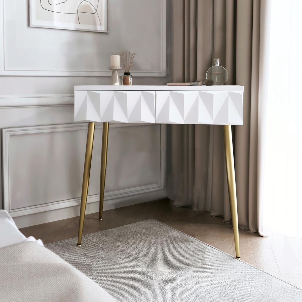 Montana is a sophisticated and contemporary dressing table that effortlessly brings a touch of style and contemporary charm to any bedroom or dressing room. This striking vanity table set showcases a contemporary geometric design, adding a fresh and on trend aesthetic to your space. Montana features two spacious storage drawers which is perfect for having all your beauty products to hand. Montana will elevate your interior and blend seamlessly with your decor.