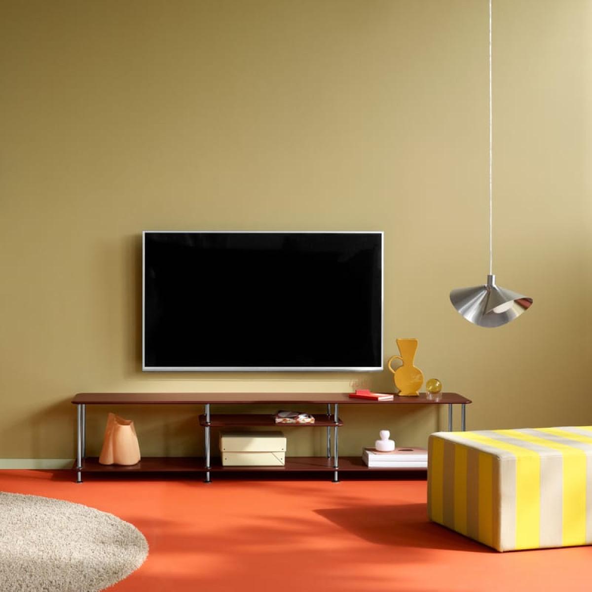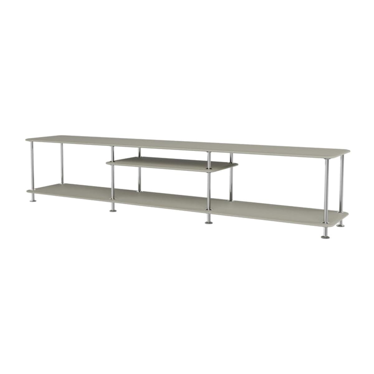 Eco-certified Danish furniture... Designed and manufactured in Denmark since 1982, Montana furniture is designed to last a lifetime and be handed down from generation to generation. A benchmark in eco-responsibility, Montana furniture has been awarded the European Ecolabel, the Danish Indoor Climate Label and PEFC certification. Evolutive and flexible, Montana furniture can be freely assembled to meet the needs of contemporary, dynamic living. The extensive color palette was developed by award-winning Danish designer Margrethe Odgaard, a true color alchemist. This elegant low shelf is ideal as a Television table. It can be placed in the middle of a room and used as a refined room divider. Its versatile design allows it to find a place in any room of the house, providing both storage and showcasing your objects. The minimalist Montana Free 111010 is designed with 16 mm Lacquered MDF shelves that fit onto lacquered metal cylinders, guaranteeing both sturdiness and visual lightness. Delivered flat-packed, Montana Free 111010 has been designed for quick and easy assembly. Dimensions : W 203.4 x H 41.7 cm In detail: Variation : Fennel 144 / Chromed Structure Brand : MONTANA Designer : Jakob Wagner Type : Low console, Television table Colour : Shelves : Fennel 144 / Chromed Structure Material : Shelves: 16 mm lacquered MDF, PEFC-certified, water-based lacquer (odorless and solvent-free) - Structure:Chromed steel Dimensions :W 203.4 x D 38 cm x H 41.7 cm Weight : 66 lb Characteristics : Low console / Television table - Designed and manufactured in Denmark - 10-year warranty (high quality: sturdy and durable) - Made to last a lifetime - eco-certified (European ecolabel, Danish indoor air label, PEFC certification) - Delivered unassembled (easy to assemble) Show less