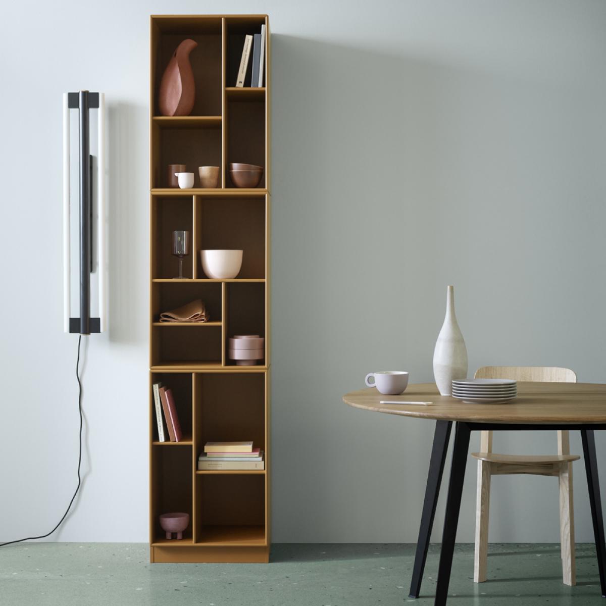 I really like this Montana Loom bookshelf in white with a 3 cm base for its versatile and modern design, making it a great statement piece in both contemporary and minimalist interiors. Its varied compartment sizes lend themselves perfectly to a mix of books, decorative objects, and plants, allowing for practical yet stylish styling. It works well in living rooms, home offices, or even bedrooms where you want to add visual interest without overwhelming the space. For styling, consider grouping similar items in clusters or balancing larger objects with smaller accessories to create a cohesive look. Its slim profile makes it ideal for narrow wall spaces, making it a practical choice for maximizing storage in smaller homes or apartment settings.