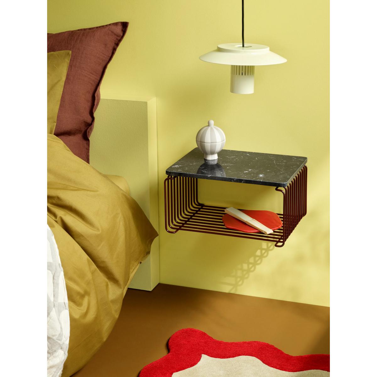 Panton Wire Half Height shelf 34.8x17.2x25.7 cm from Danish Montana is an eye-catching cube-shaped shelf made of closely spaced iron rods. The elegant shelf can be used for everything from magazines and books to decorative accessories. Use the wall shelf as a stylish drop-off surface in the kitchen, as a bedside table in the bedroom, or as a side table by the reading chair in the living room.