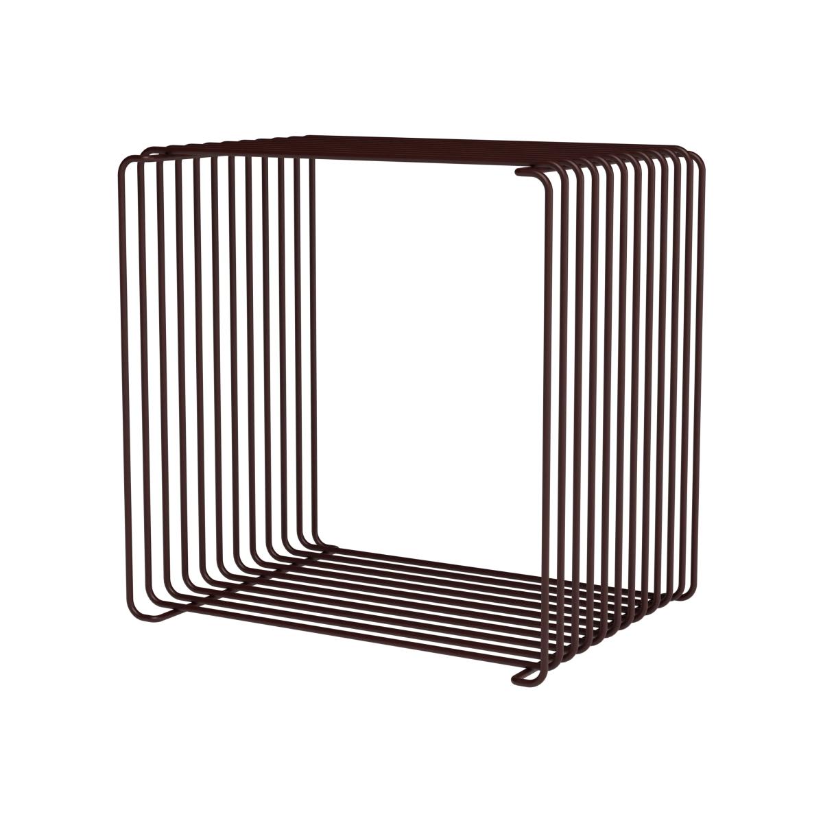 The Panton Wire Single shelf, 34,8x34,8x25,7 cm, from Danish brand Montana is a striking cube-shaped shelf constructed of closely spaced iron bars. This elegant shelf can be used for everything from magazines and books to beautiful interior details. Use the wall shelf as a stylish surface for storage in the kitchen, as a bedside table in the bedroom, or as a side table next to the reading chair in the living room.