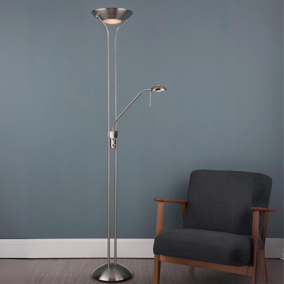 Montana 2-light mother and child floor lamp, featuring a dimmable uplighter, a dimmable and adjustable reading lamp and a satin chrome finish. The Montana mother and child floor lamp offers the perfect blend of style and versatility. Featuring a sleek satin chrome finish, this contemporary lamp is designed to meet both ambient and task lighting needs. The main uplighter provides a soft, diffused glow that can be dimmed to suit your mood, while the adjustable reading lamp offers focused illumination with its own dimmer control, ideal for reading or detailed tasks. With its dual functionality and elegant design, the Montana floor lamp is a practical and stylish addition to living rooms, bedrooms or study spaces. Its clean lines and modern finish complement a wide range of interior styles, making it a must-have for your home lighting setup. Montana 2-light mother and child floor lamp, featuring a dimmable uplighter, a dimmable and adjustable reading lamp and a satin chrome finish. The Montana mother and child floor lamp offers the perfect blend of style and versatility. Featuring a sleek satin chrome finish, this contemporary lamp is designed to meet both ambient and task lighting needs. The main uplighter provides a soft, diffused glow that can be dimmed to suit your mood, while the adjustable reading lamp offers focused illumination with its own dimmer control, ideal for reading or detailed tasks. With its dual functionality and elegant design, the Montana floor lamp is a practical and stylish addition to living rooms, bedrooms or study spaces. Its clean lines and modern finish complement a wide range of interior styles, making it a must-have for your home lighting setup.