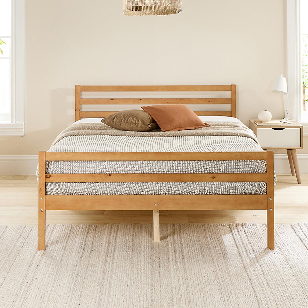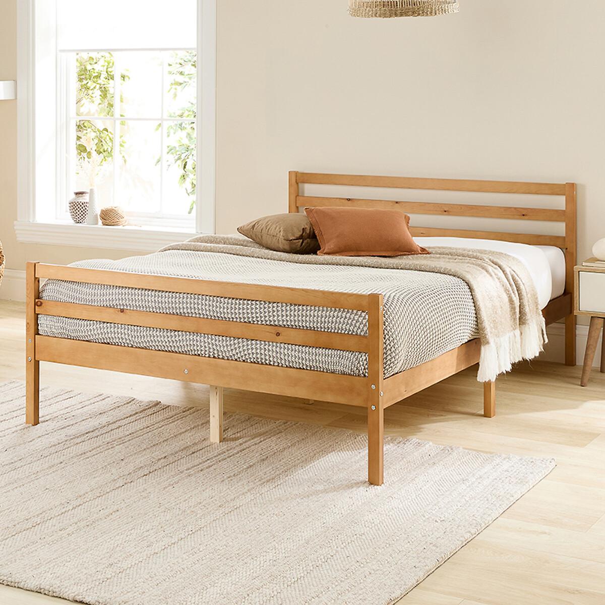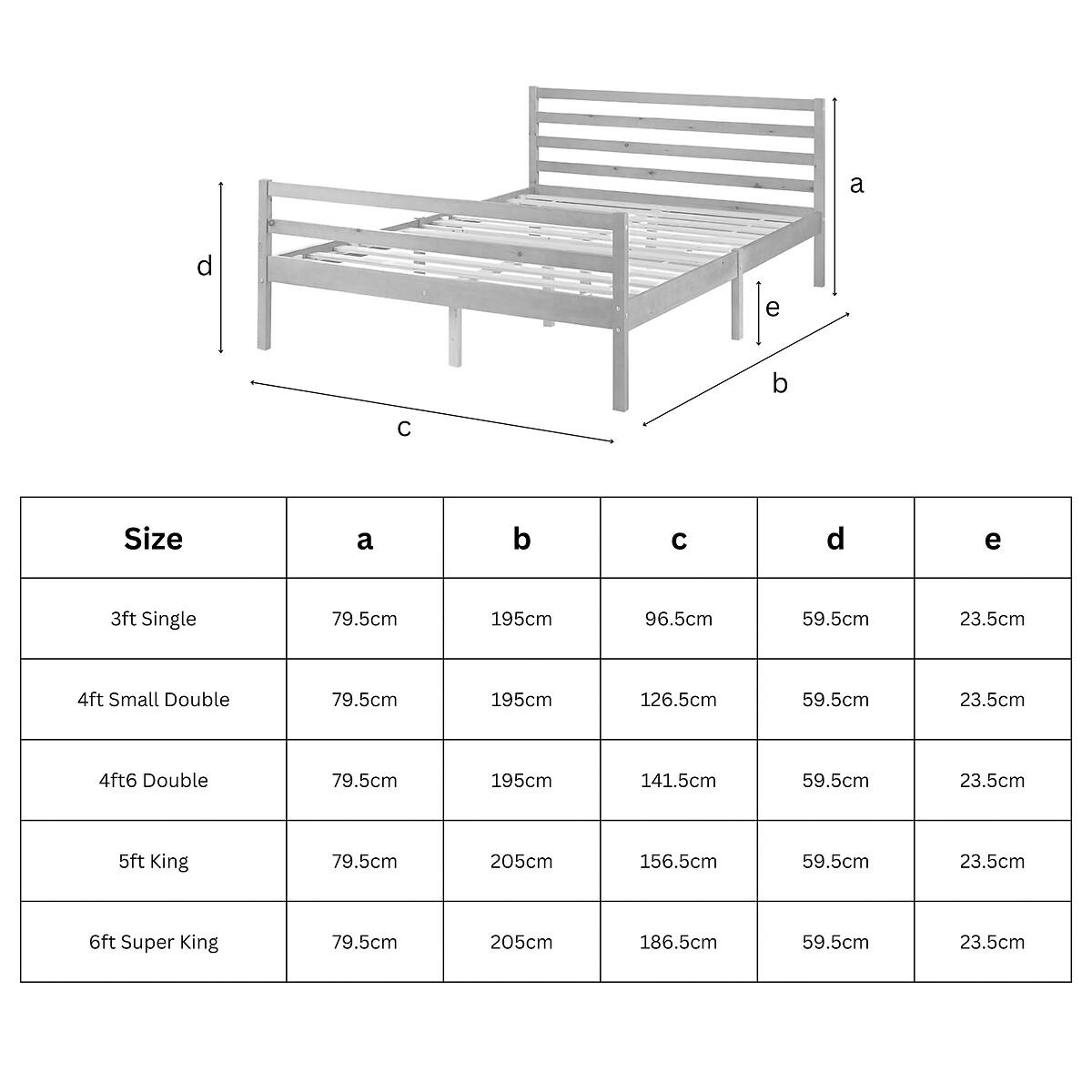 Featuring a timeless shaker design, this classic bed frame exudes elegance whilst still ensuring durability with its long-lasting solid slat system. A traditional varnished finish highlights the natural grain of the wood. The perfect blend of style, quality and affordability. Product details -Wood frame-Horizontal slatted headboard-Central feet for extra support in the middle of the bed-Varnished finish-Compatable with standard UK size mattresses-Supplied flat-packed (a screwdriver is required for assembly, 2 person assembly recommended) -This bed has undergone rigorous structural testing to meet EN 1725 standards, ensuring peace of mind regarding its quality and safety.20cm clearance Product Dimensions: -Single: 197 cm x 96.5 cm x 79.5 cm Weight: 15 kg-Small Double: 197 cm x 126.5 cm x 79.5 cm Weight: 19 kg-Double:197 cm x 143.5 cm x 79.5 cm Weight: 22.5 kg-King: 207 cm x 156.5 cm x 79.5 cm Weight: 23 kg-Super King: 207 cm x 186.5 cm x 79.5 cm Weight: 26 kg. Please remember to measure your available space before ordering. Packaged Dimensions:Single: 98 cm x 30 cm x 18 cm Weight: 17 kg. Small Double: 123 cm x 30 cm x 18 cm Weight: 21.5 kg. Double: 145 cm x 30 cm x 17 cm Weight: 23.5 kg. King: 156 cm x 30 cm x 17 cm Weight: 26 kg Super King: Parcel 1: 186 cm x 29 cm x 13 cm Weight: 28.5 kg Parcel 2: 290 cm x 109 cm x 7cm This product will be dispatched by one of our trusted suppliers. You’ll be contacted by their selected courier about your delivery. ASPIR01