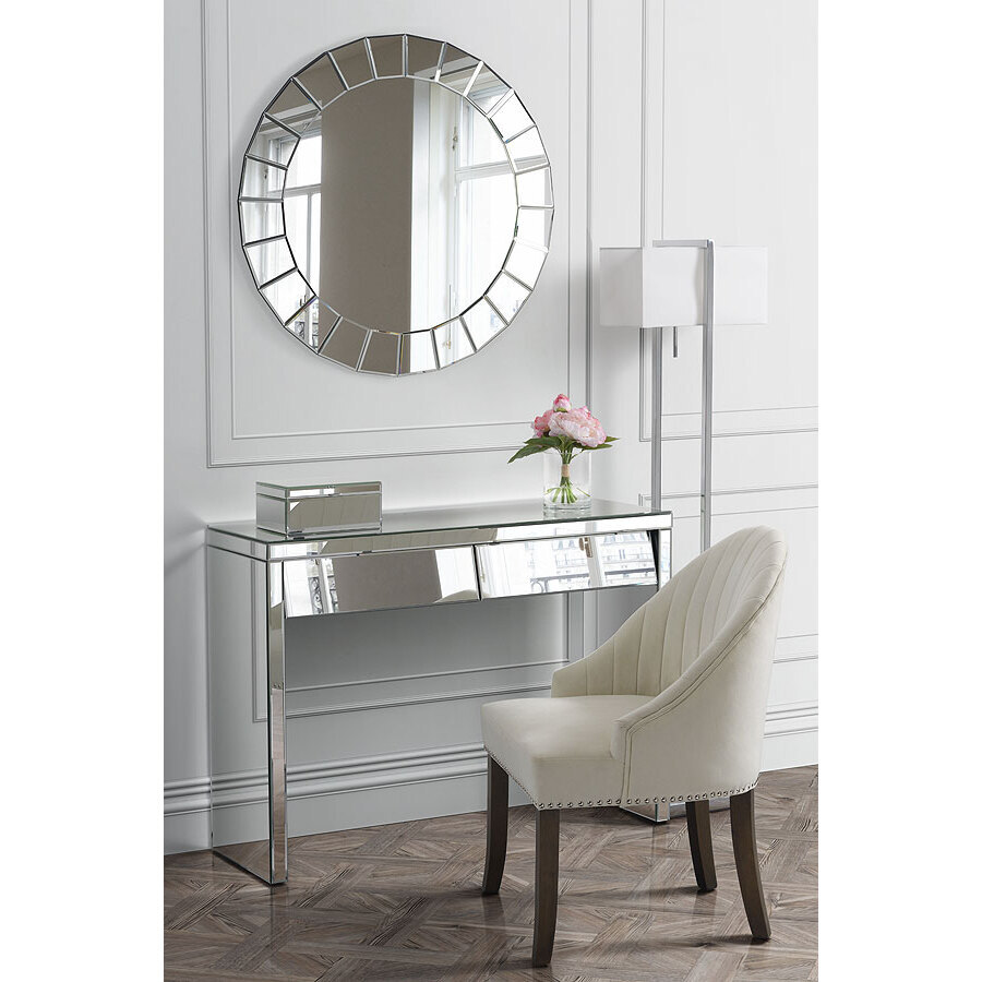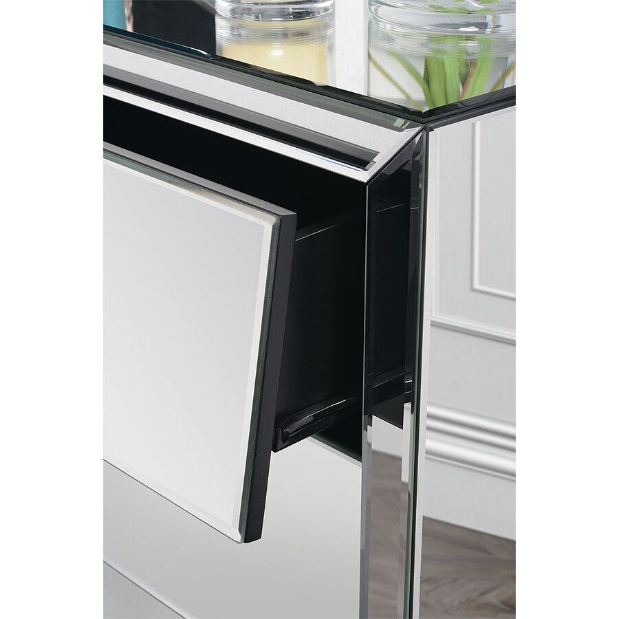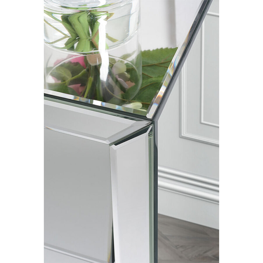 I love this console table because of its sleek, modern design and reflective finish, which can instantly brighten a space. It works particularly well in contemporary or minimalist interiors, but can also add a chic contrast in more eclectic or glamourous settings. Practical styling tips include using it as an entryway statement, topped with a marble tray and some fresh greenery, or as a stylish surface for your favourite decorative objects. Keep accessories minimal to let the mirror-like finish shine, and consider pairing it with softer textures or bold artwork to create a balanced look. It's versatile enough to sit comfortably in living rooms, hallways, or bedrooms, bringing both form and function to your space.