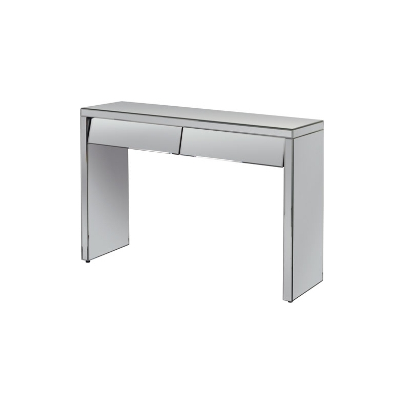 A glamorous, contemporary console table inspired by Art Deco furnishings. Characterful louvre design cleverly doubles up as handle. Featuring two spacious drawers providing ample storage for make-up and grooming products. Requires assembly,aprox time 5 minutes one person. Weight 35kg Delivered Assembled