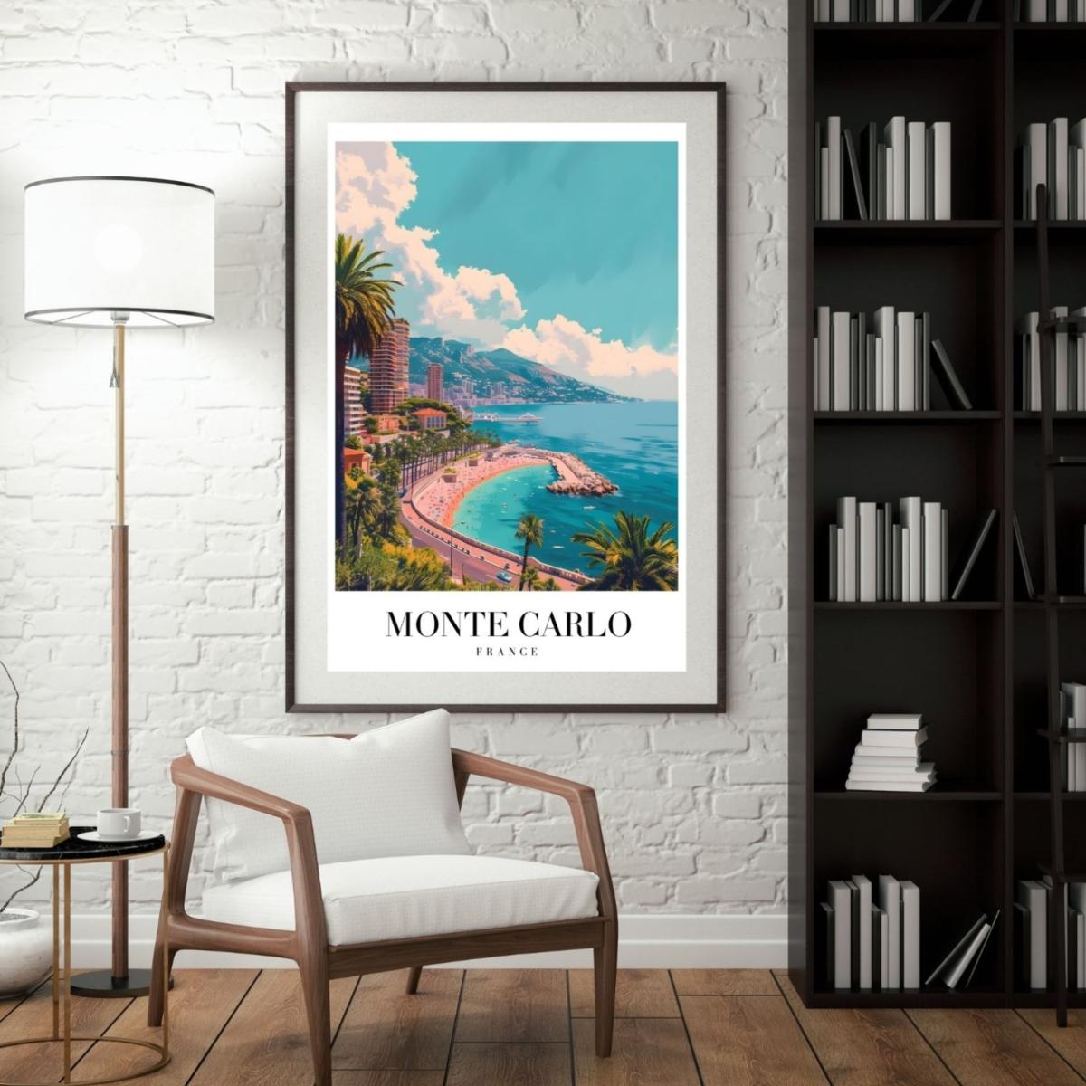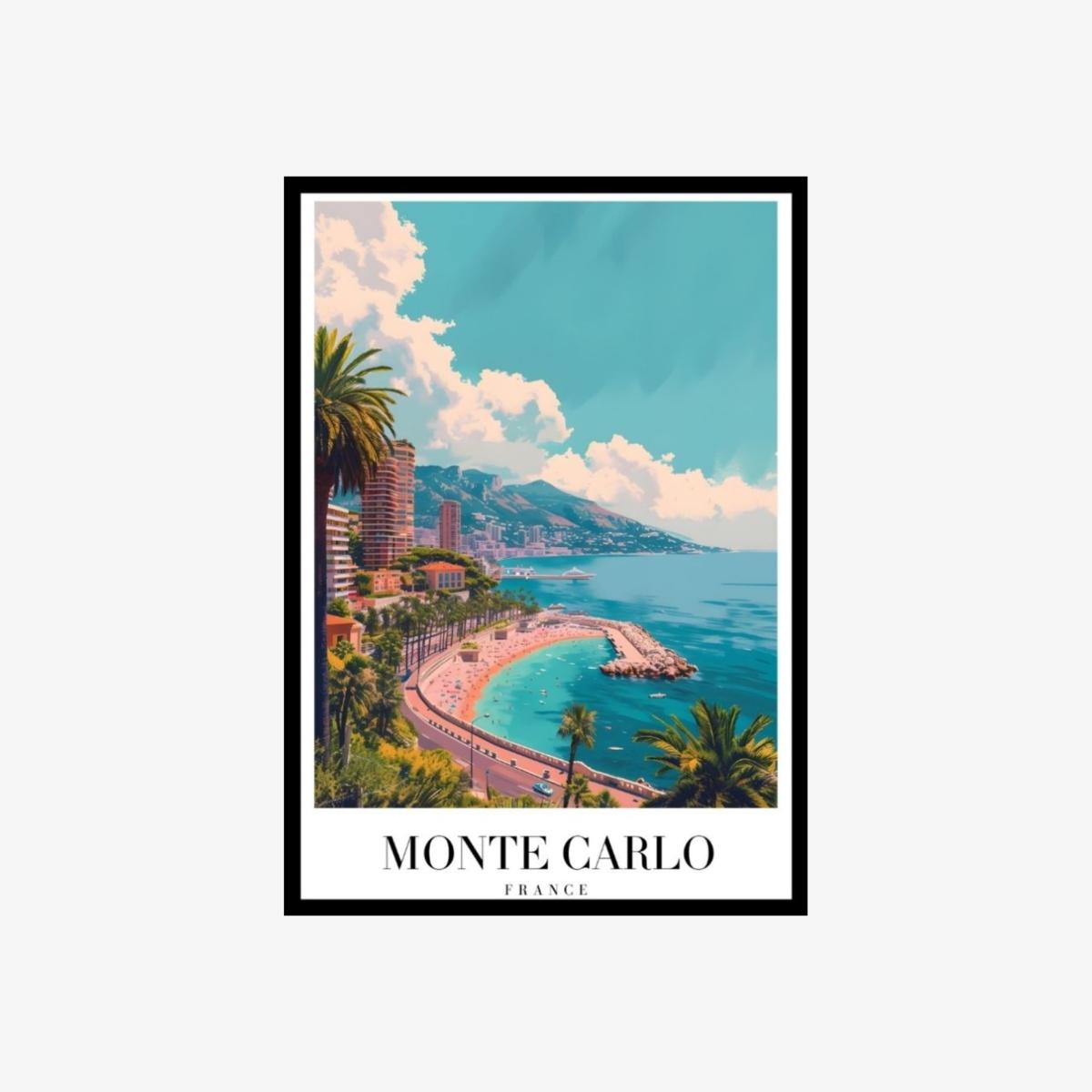 This A3 poster highlights the glamorous allure of Monte Carlo, with its sunlit beaches, lush palm trees, and serene blue waters. A vibrant addition for those drawn to the elegance of the French Riviera. We offer this poster unframed at the moment.