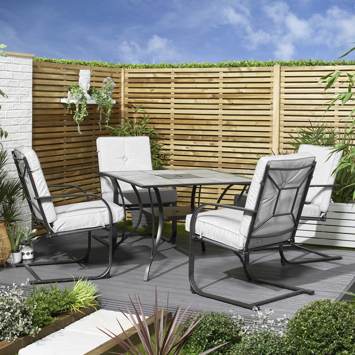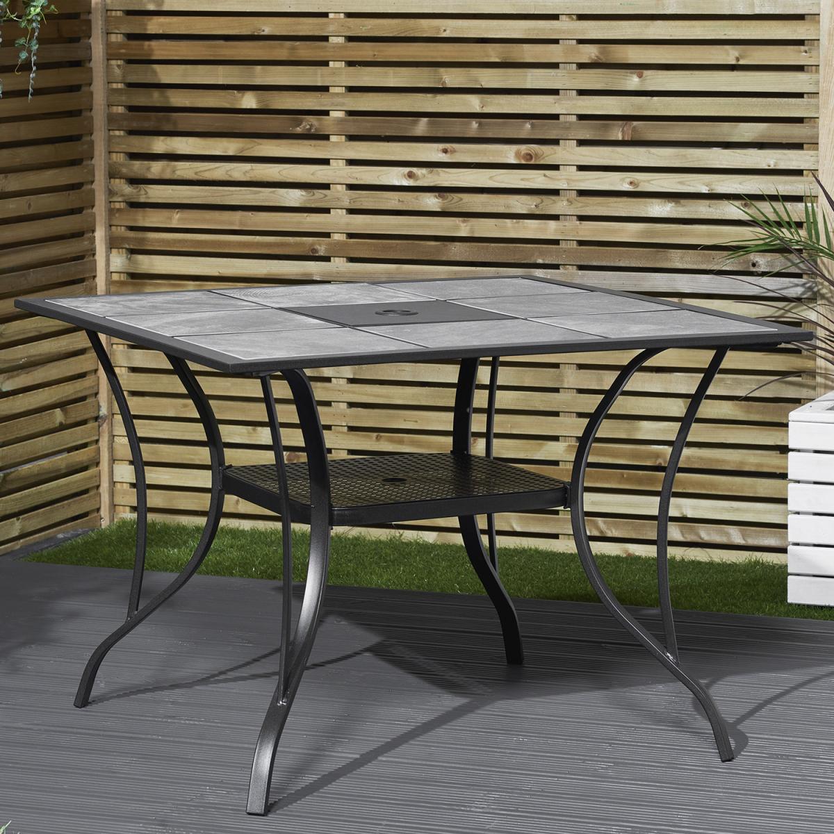 Perfect for whiling away summer evenings with loved ones, the Monte Carlo Firepit Table will allow you to stay warm and cosy even as the sun begins to go in. The Monte Carlo Firepit Table comes with an inbuilt firepit in the centre of the table, as well as a guard to protect against flames. The powder-coated steel frame is coloured a sleek black, and the low, curving legs create an air of luxury in this table. The stone affect tiles around the table top add even more class, and all these dark colours and smooth lines will positively opulent once the fire is roaring and a warm orange glow contrasts with shadows. The Monte Carlo Firepit Table even comes with an included grill, so you and your friends can use the fire to cook food or BBQ snacks. This table is ideal for anyone that loves creating a sense of community in their home and who loves inviting friends around for BBQs.